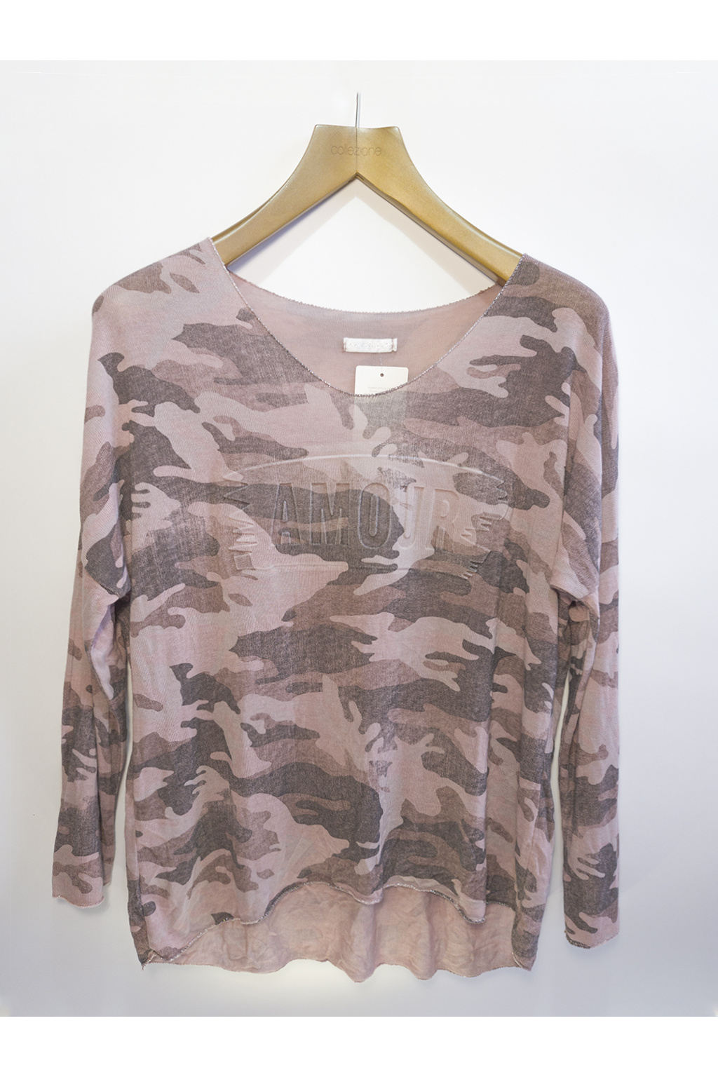 Dámské tričko s maskáčovým - vojenským - army potiskem a vyritým nápisem "AMOUR". Tričko má 3/4 - tříčtvrteční rukáv a elastické. Je z velmi příjemného bavlněného a viskozóvé směsi.