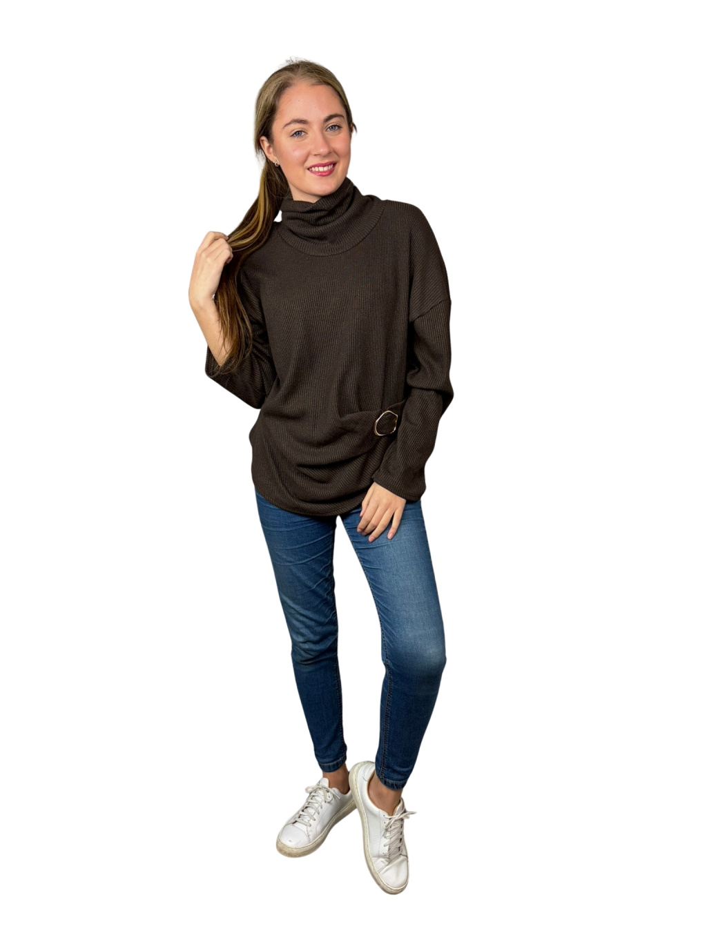 Rolákový límec působí elegantně a zároveň poskytuje příjemný komfort v chladnějších dnech. Díky jednobarevnému provedení se top Elva snadno kombinuje s džínami, kalhotami i sukněmi.