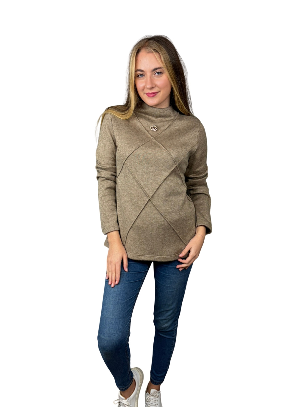 Elegantní rolákový top Royal z jemné viskózy s elastanem je ideální volbou pro každodenní nošení i elegantnější outfity. Přiléhavý, ale pohodlný střih, dekorativní švy do kříže a stojáčkový límec vytváří nadčasový a ženský vzhled.