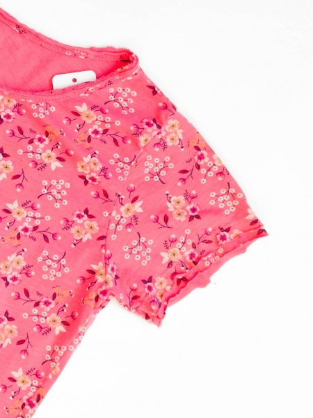 Dámské bavlněné letní tričko s potiskem květů. Je z velice příjemného bavlněného materiálu. Tričko má krátký rukáv.