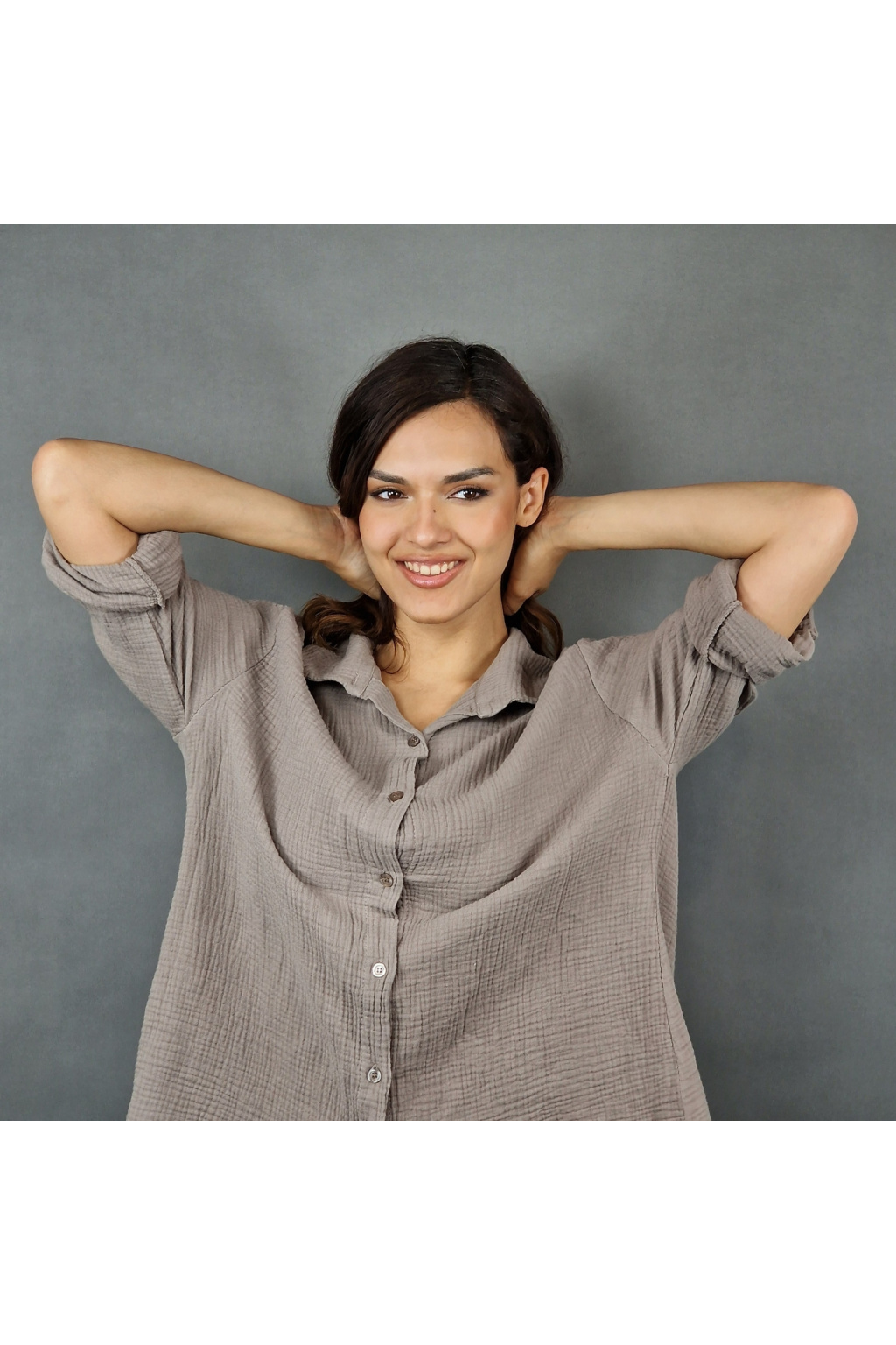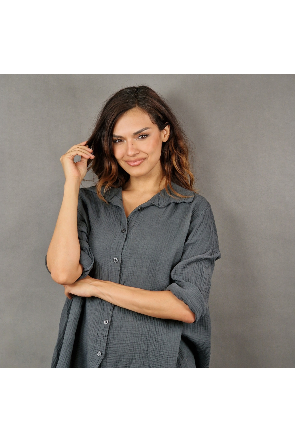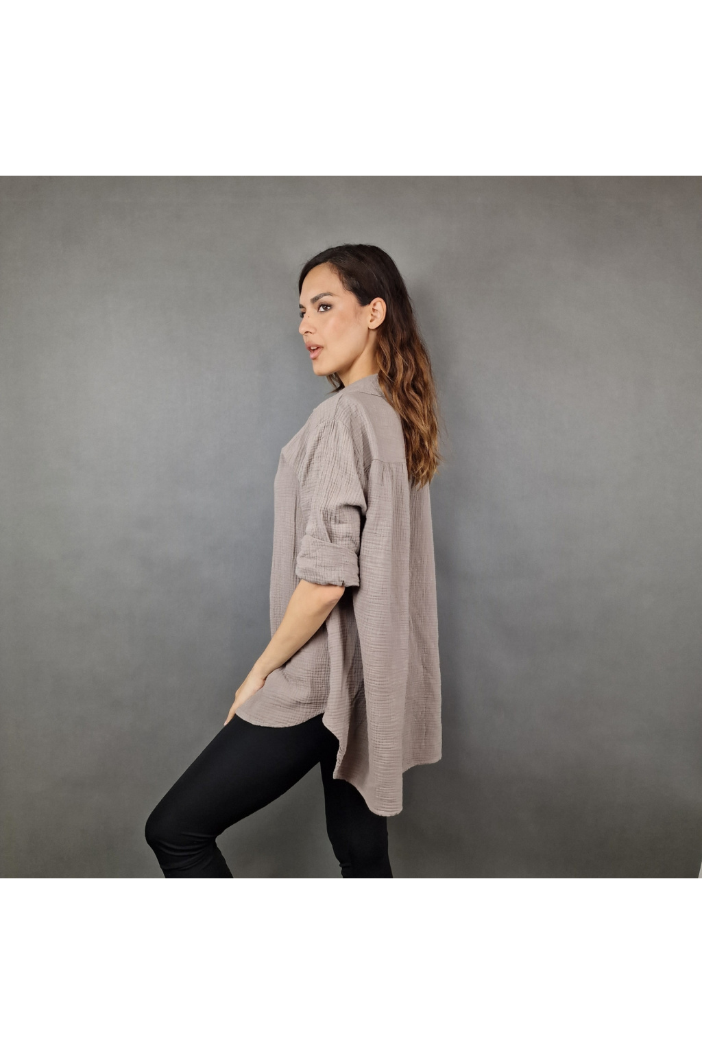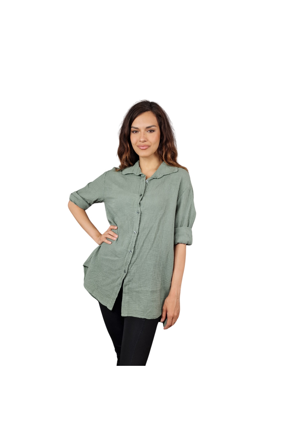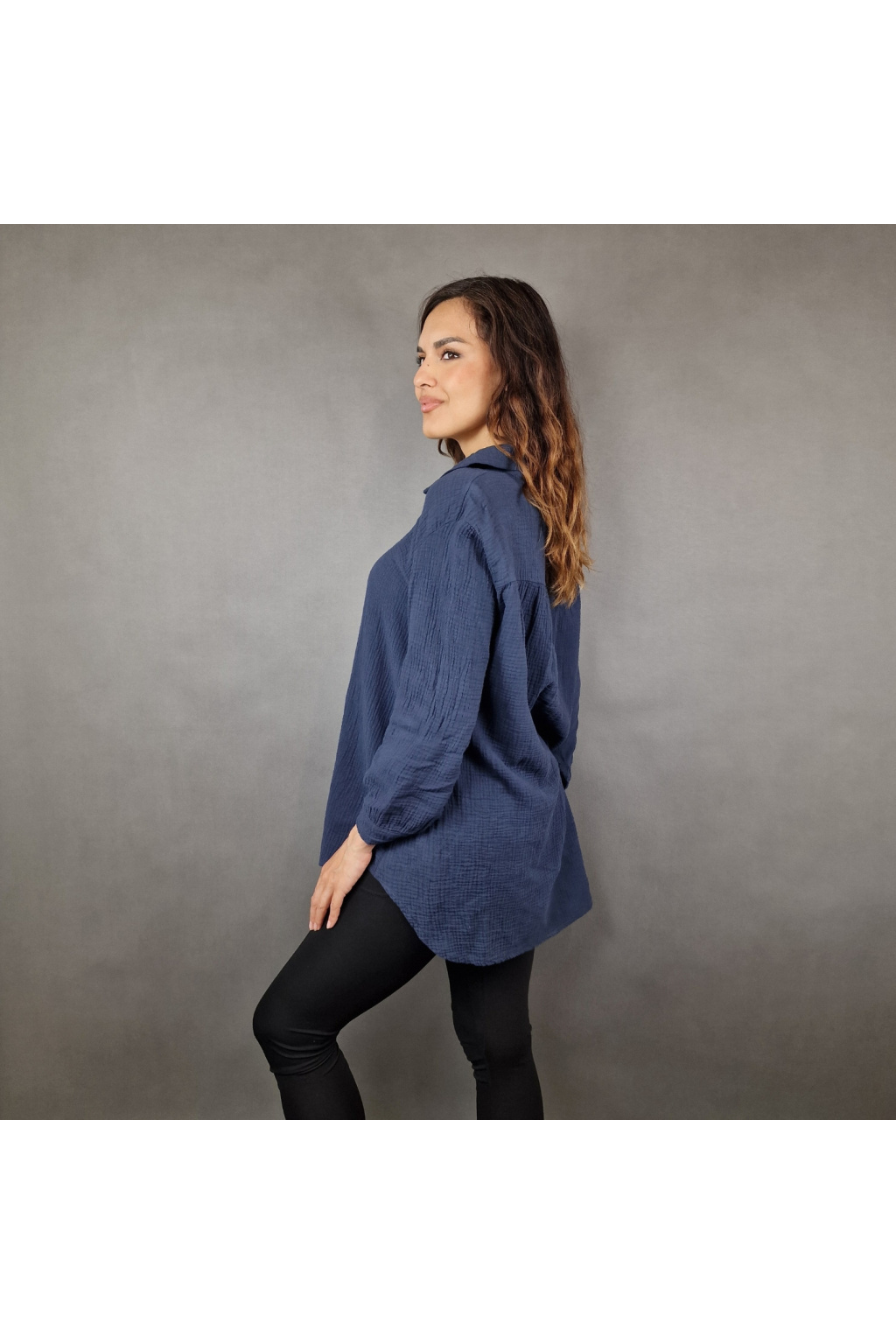 Díky volnému střihu je košile Adalyn univerzálním kouskem vhodným pro různé typy postav. Tento model nabízí klasický límeček a knoflíkový zapínací systém, který dodává košili sofistikovaný vzhled. Delší zadní část vytváří moderní asymetrii, která působí zajímavě a originálně.