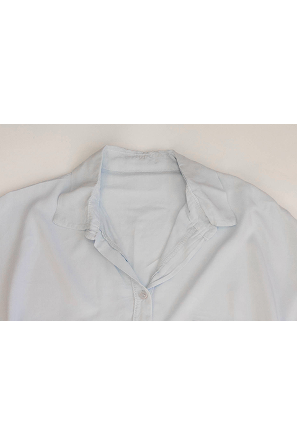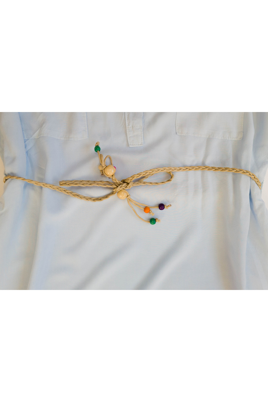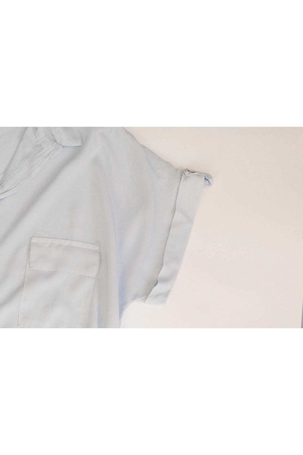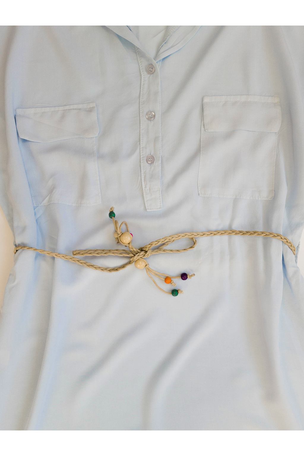 Dámské jednobarevné košilové šaty. S krátkým rukávem, na přední straně se dva kapsami. Zapínání na knoflíky