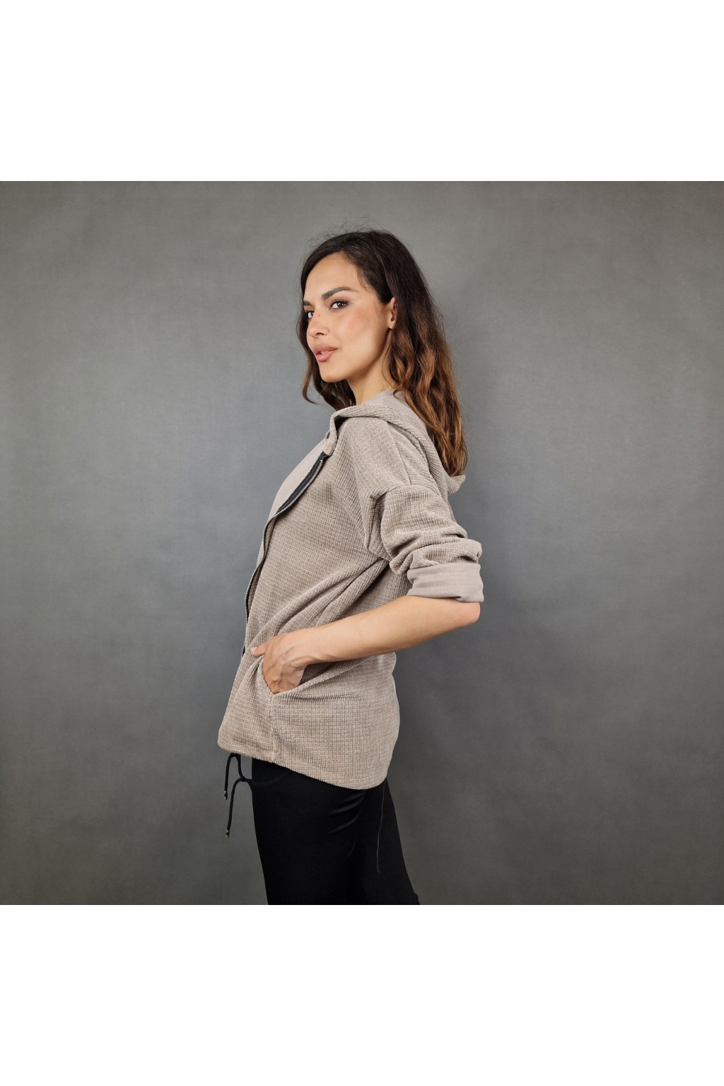 Mikina Bree se zipem je stylový a praktický kousek, který kombinuje pohodlí s moderním vzhledem. Má volnější střih, který zajišťuje pohodlné nošení a snadné vrstvení přes různé typy oblečení. Zapínání na zip na přední straně mikiny umožňuje snadné oblékání a svlékání, a zároveň nabízí variabilitu v tom, jak moc si přejete mít mikinu rozepnutou či zapnutou.