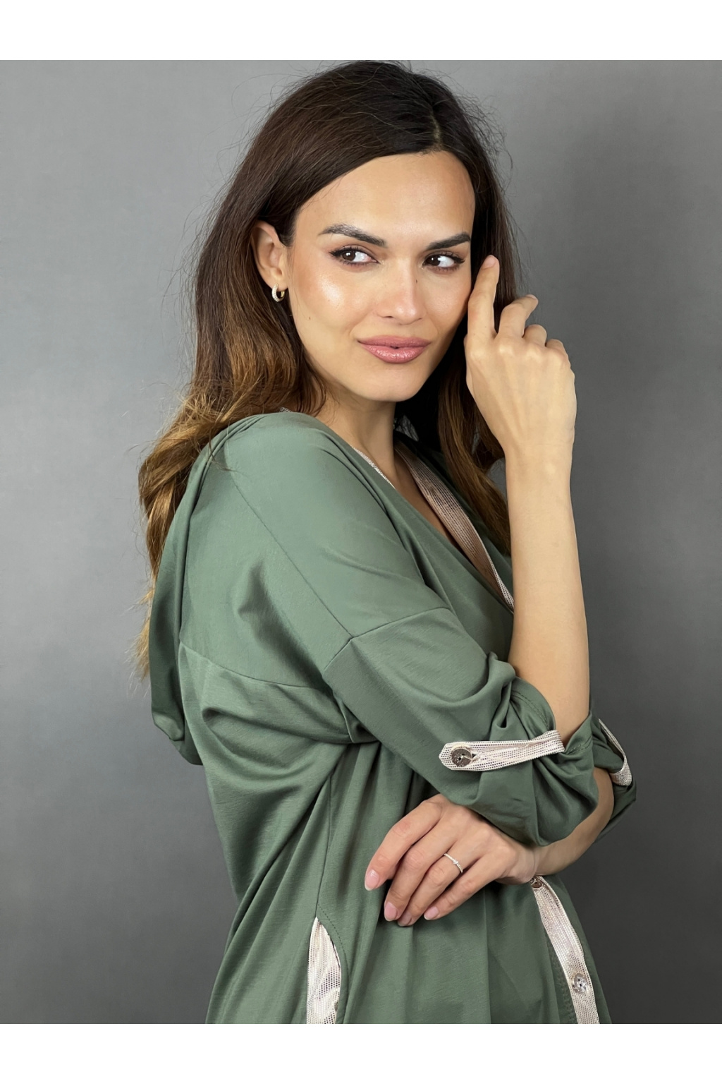 Styling tip: Noste ji rozepnutou přes top nebo tílko, případně samostatně jako ležérní tuniku. Skvěle ladí se sportovní obuví i espadrilkami.