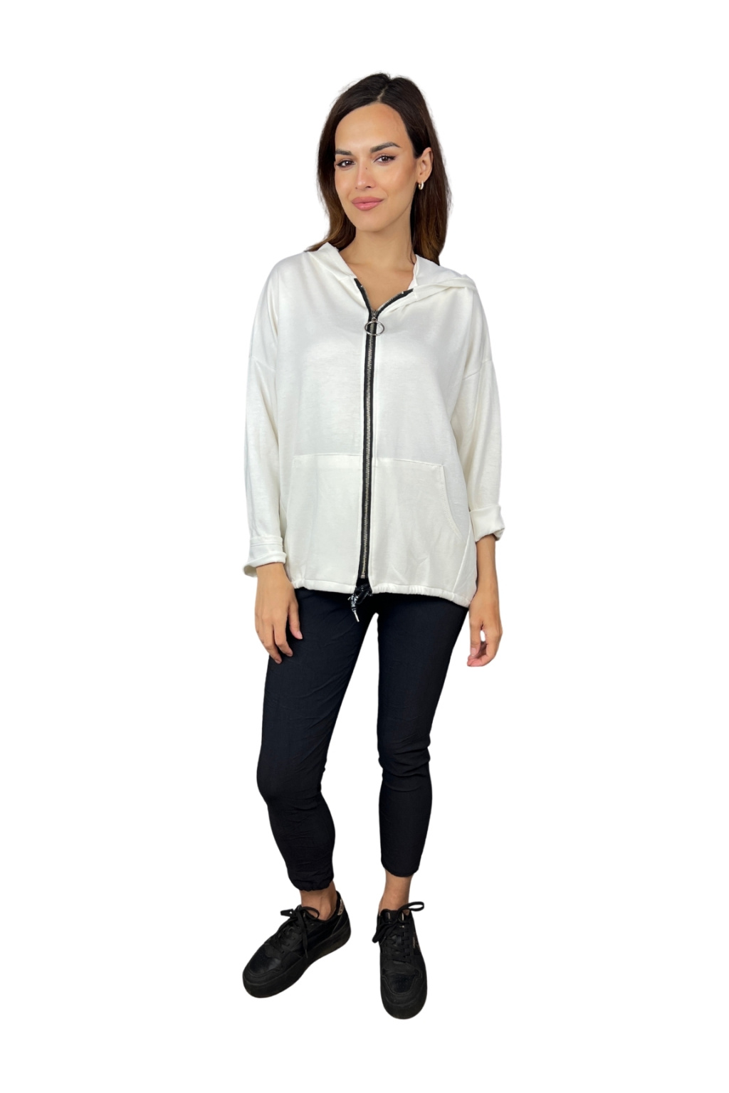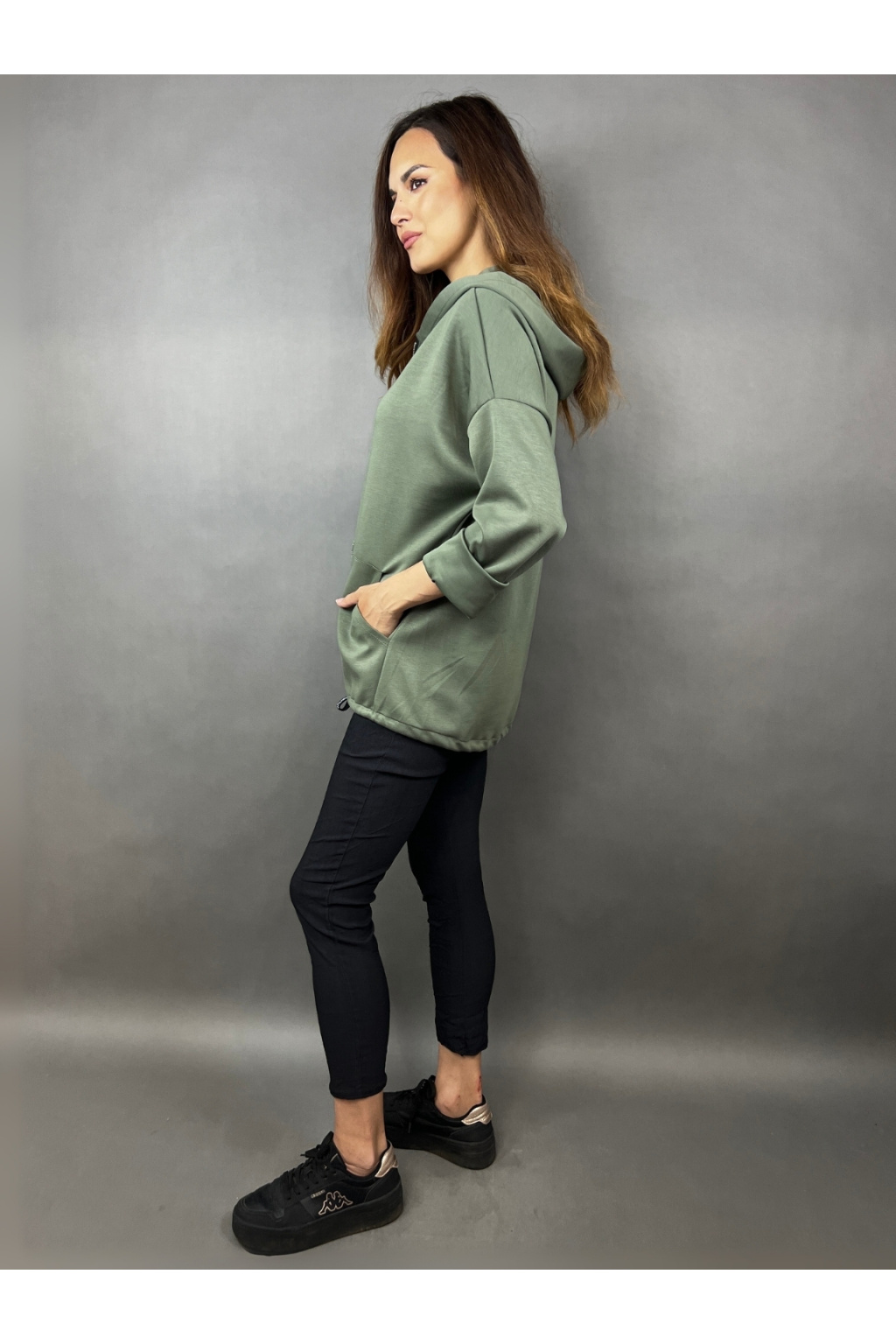 Kapuce bez šňůrek působí minimalisticky a prakticky, zatímco dolní lem se stahovací šňůrkou ti umožní mikinu upravit podle postavy. Rukávy můžeš nosit klasicky nebo ohrnuté. Ideální jak do práce, tak na víkend či volnočasové aktivity.