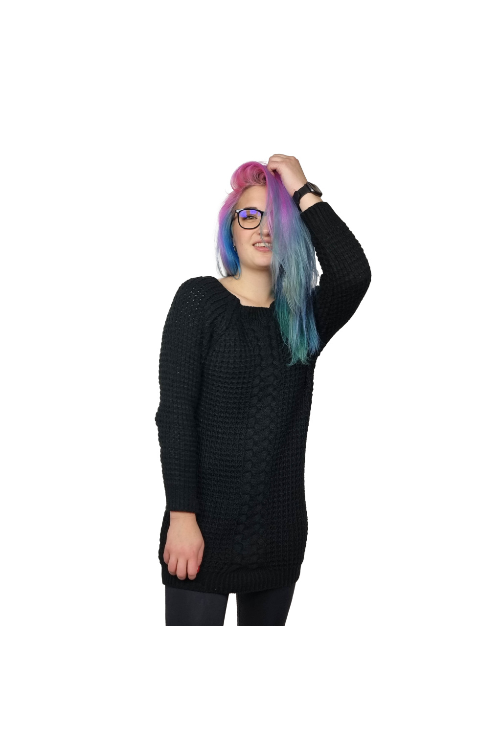 Dámský jednobarevný svetr přes hlavu ve střední délce z příjemného materiálu. Je možné kombinovat s legínami, riflemi. Vhodný na ven, do kanceláří, na rande.