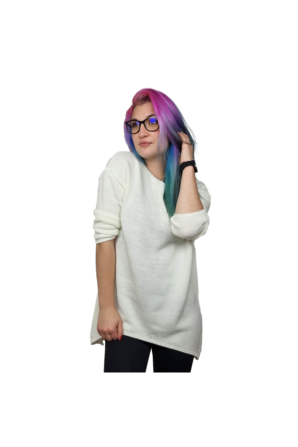 Dámský jednobarevný svetr. Svetr je z přední strany kratší - viz tabulka velikosti. Je velice příjemný na nošení.