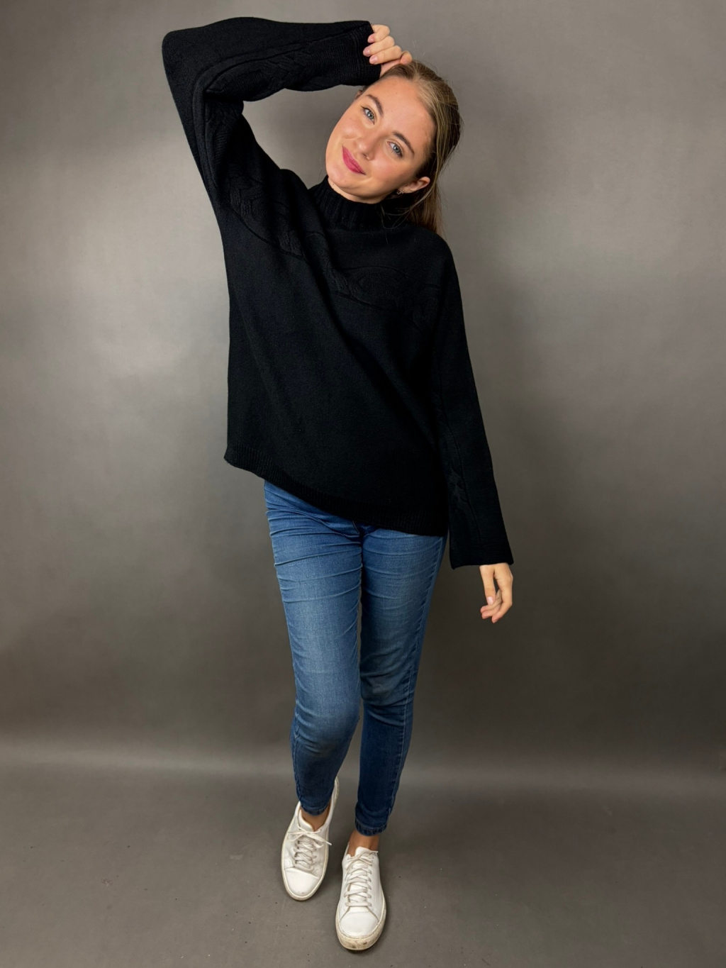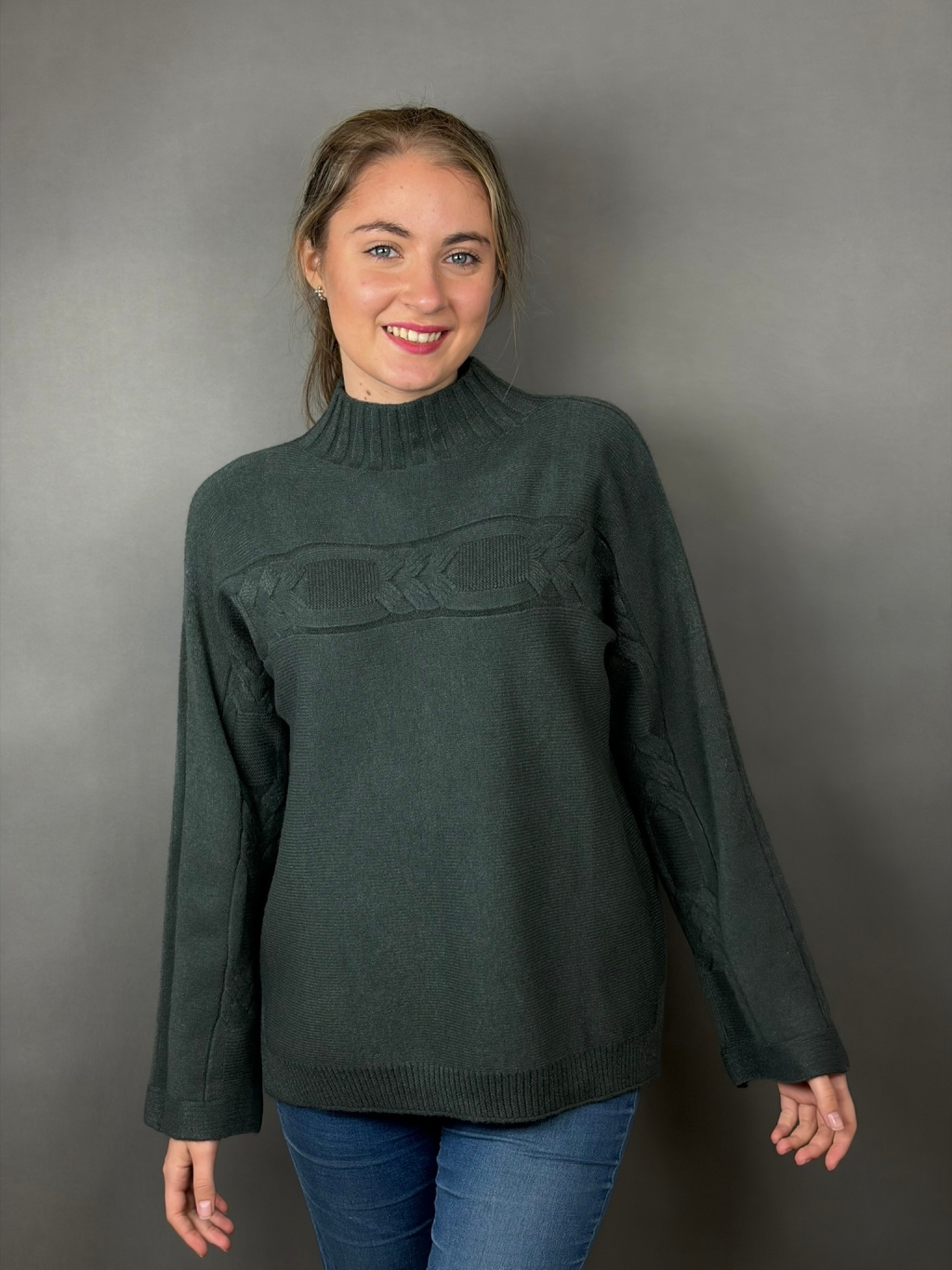 Dámský svetr Alva zaujme elegantním jednoduchým designem doplněným jemným plastickým vzorem na přední části a rukávech. Díky pohodlnému střihu a měkkému materiálu je ideální volbou pro každodenní nošení do práce i volného času.
