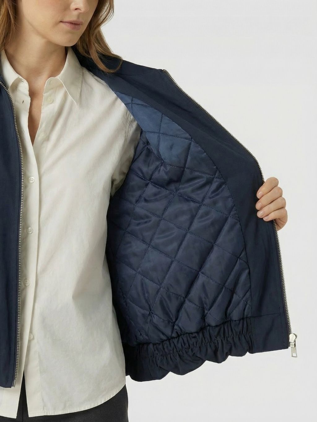 Vnitřní prošívání dodává bundě lehkou hřejivost a příjemný pocit při nošení.