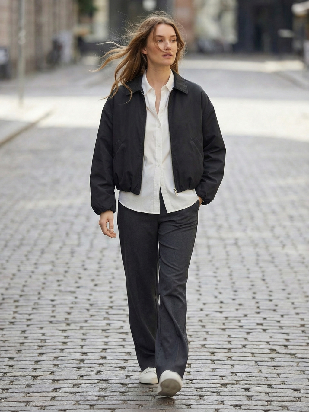 Bunda Arvena je ideální jako dámská přechodná bunda na jaro a podzim. Díky zipovému zapínání, klasickému límečku a praktickým kapsám působí elegantně a zároveň sportovně. Snadno ji zkombinuješ s kalhotami, džínami i šaty.