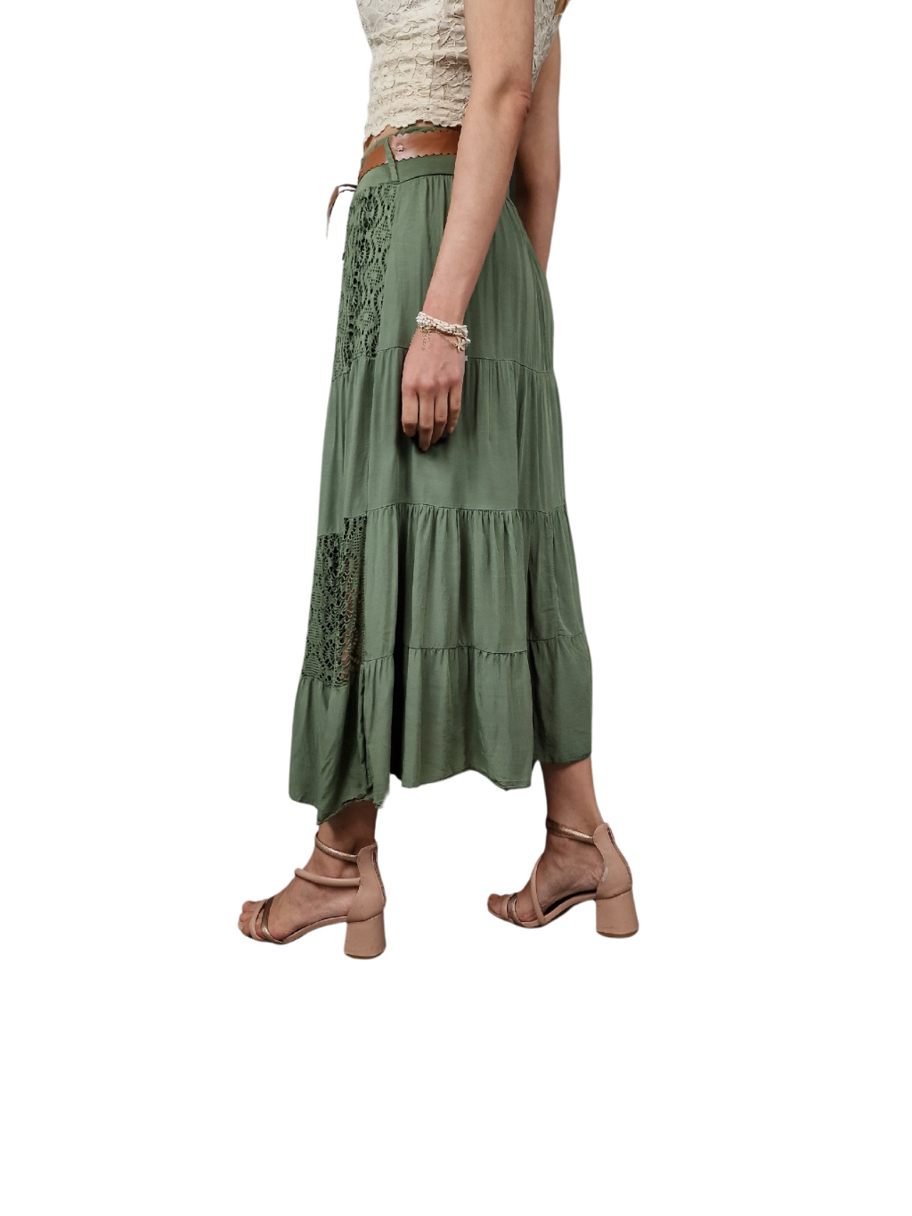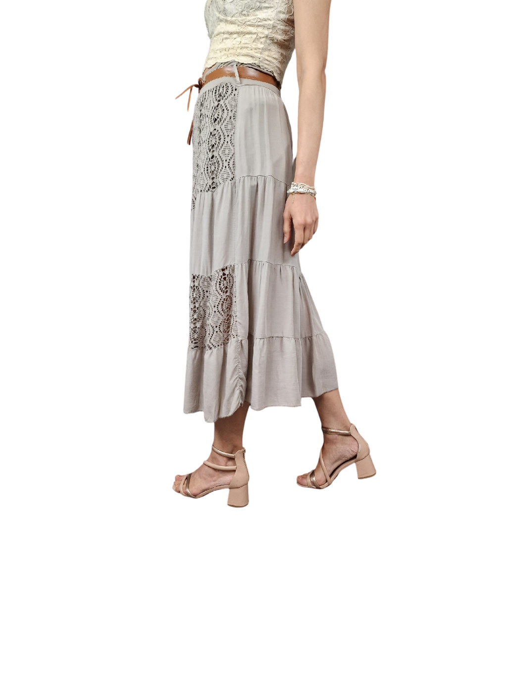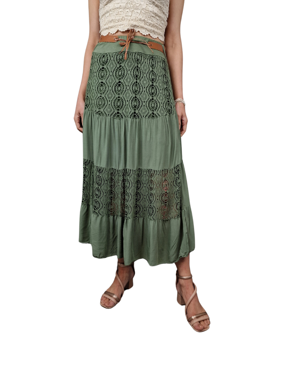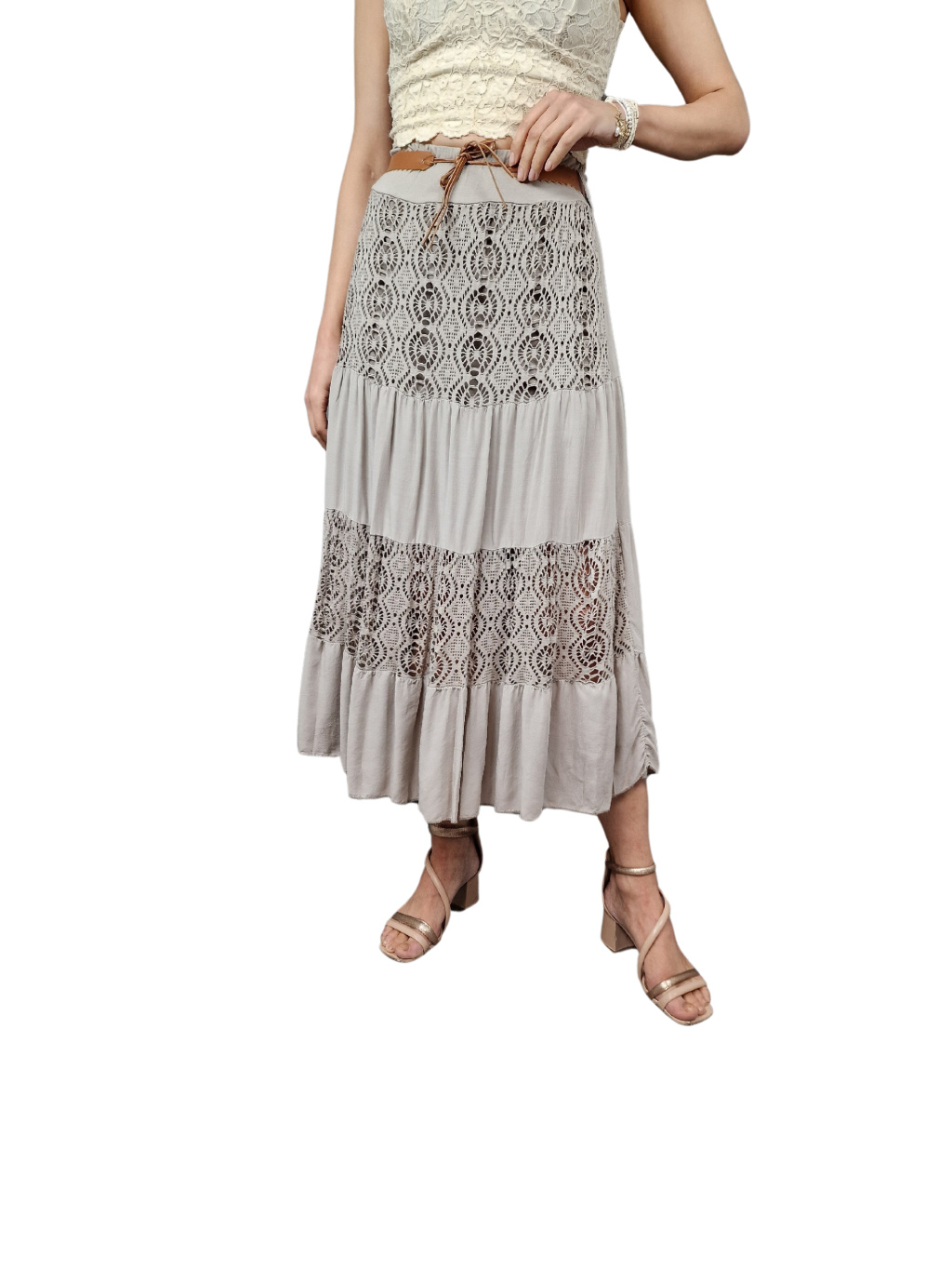 Vylepšete svůj šatník s dlouhou sukní Lydia, která přináší nádech elegance a stylu. Tato sukně se vyznačuje jemnou krajkou, která jí dodává sofistikovaný a ženský vzhled. Jednobarevné provedení usnadňuje kombinování s různými topy a doplňky, což vám umožní vytvořit mnoho elegantních outfitů.
