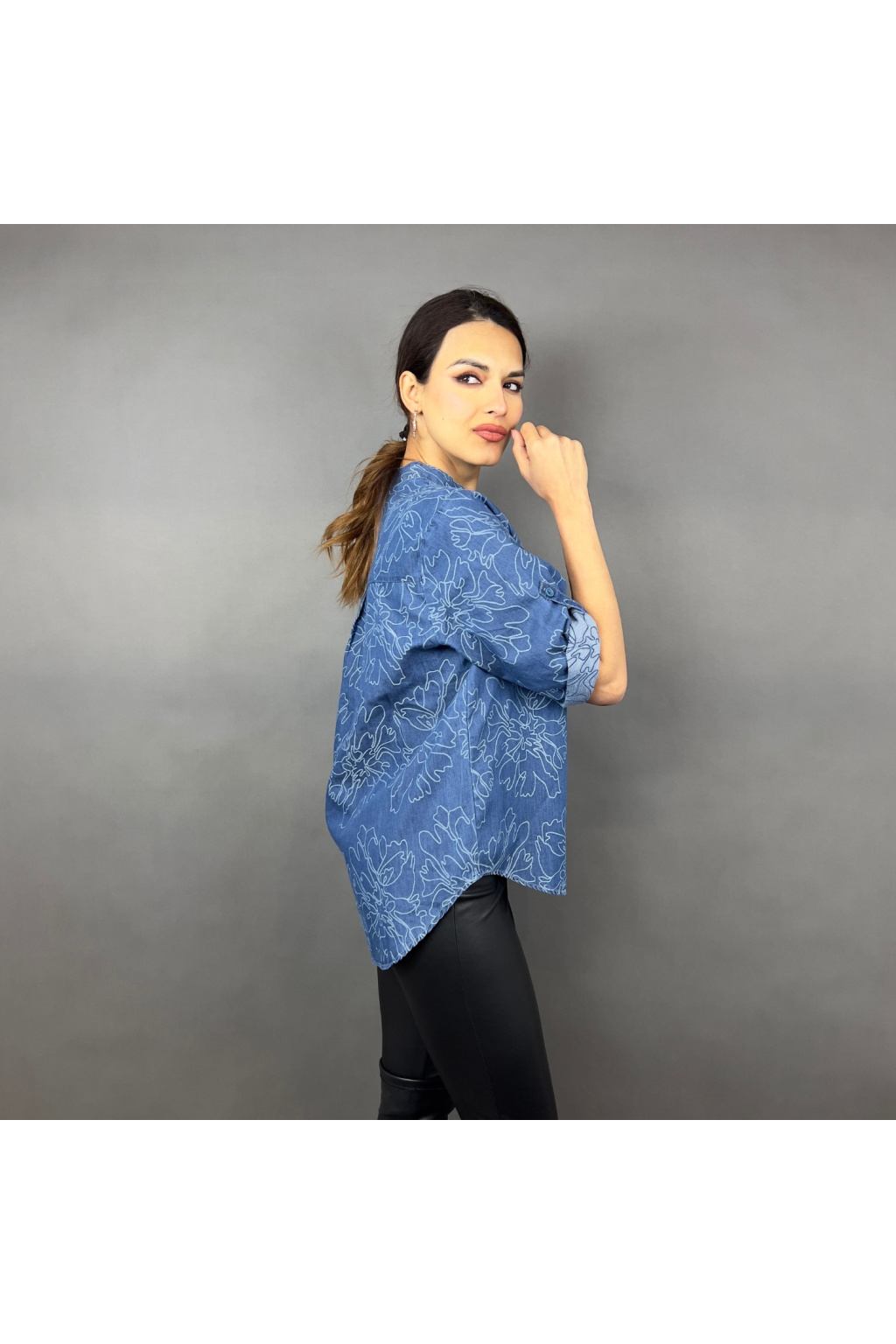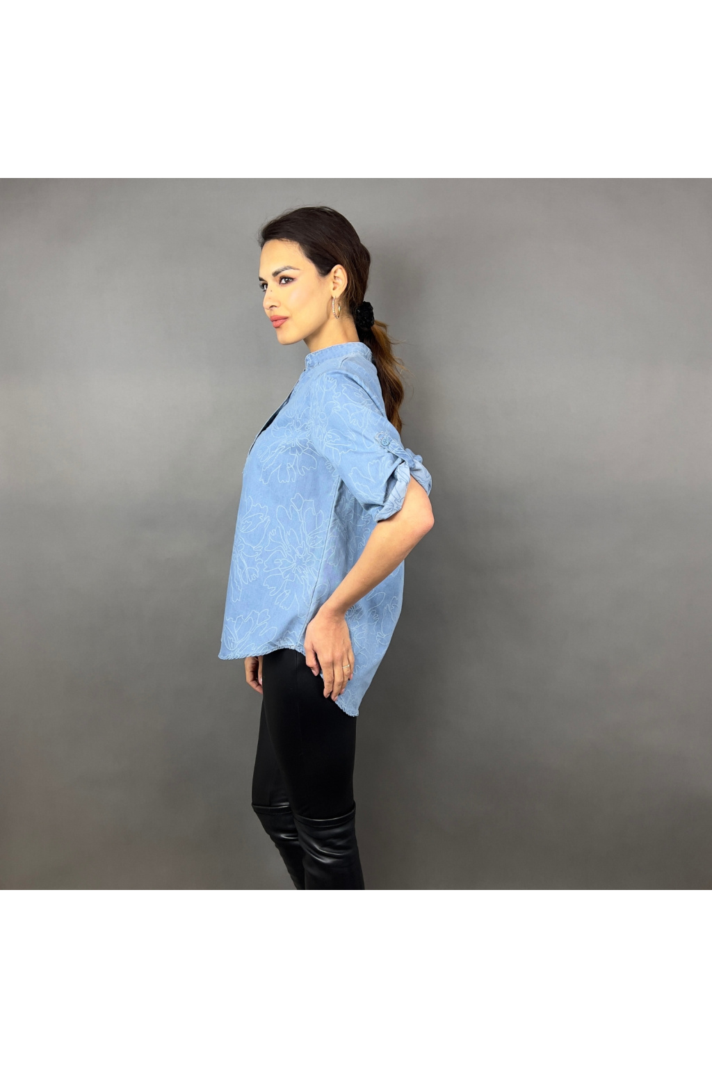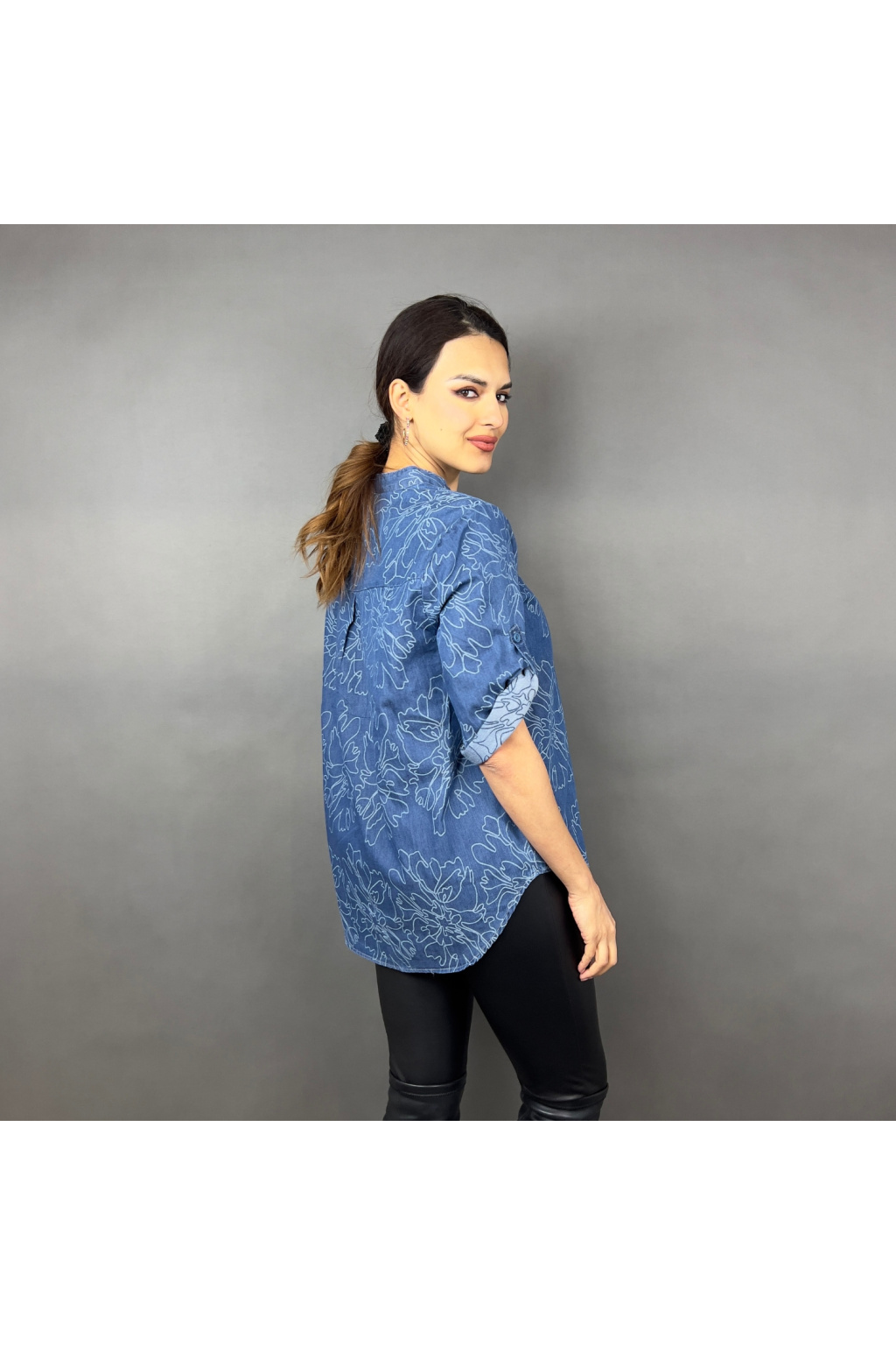 Top Raven je skvělou volbou pro ženy, které hledají spojení pohodlí a elegance. Jeho volný střih a jemný květinový vzor dodávají outfitu lehkost a ženskost. Rolovatelné rukávy s knoflíkovým zapínáním umožňují přizpůsobit styl podle potřeby, zatímco výstřih do V se stojáčkem dodává rafinovaný vzhled.