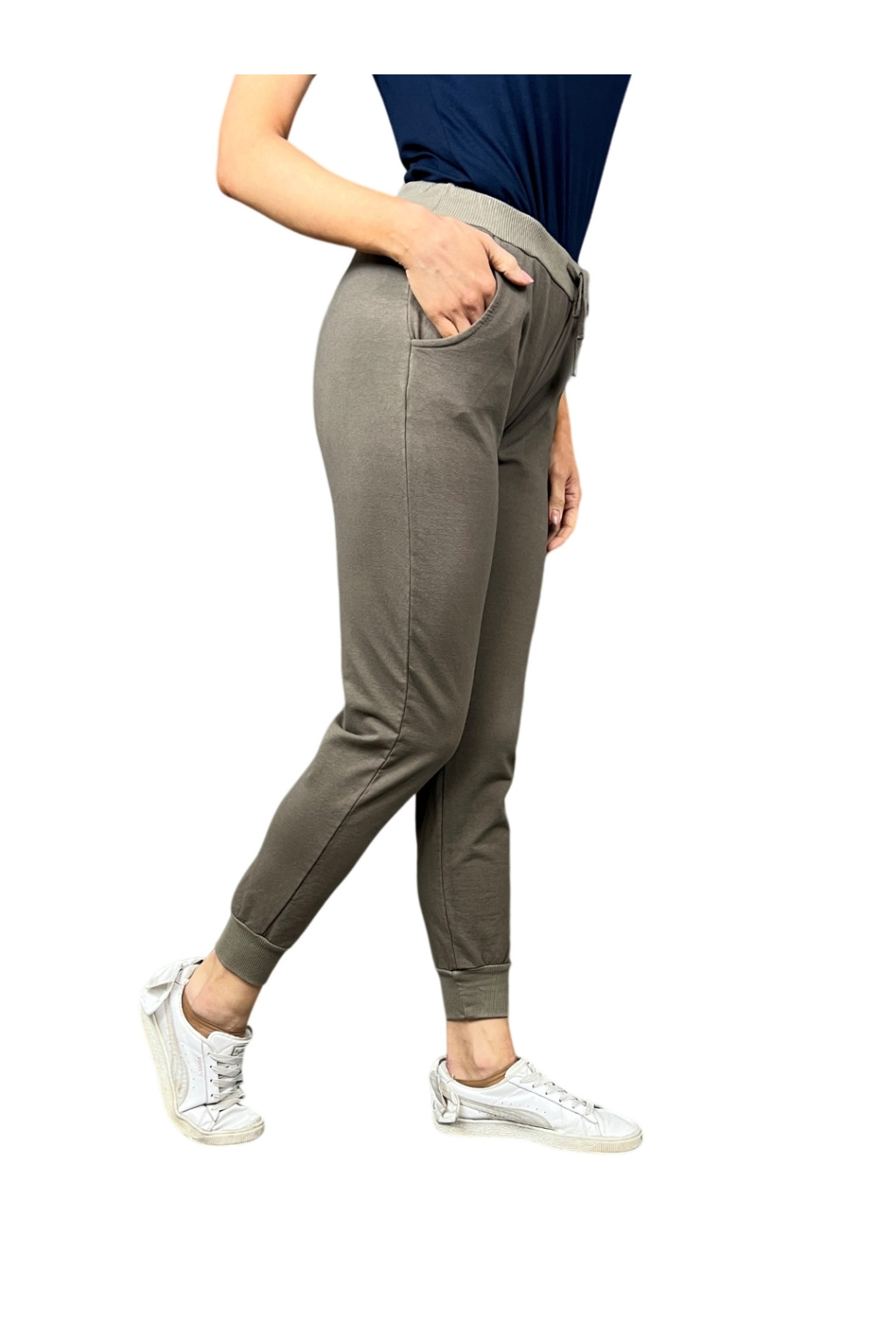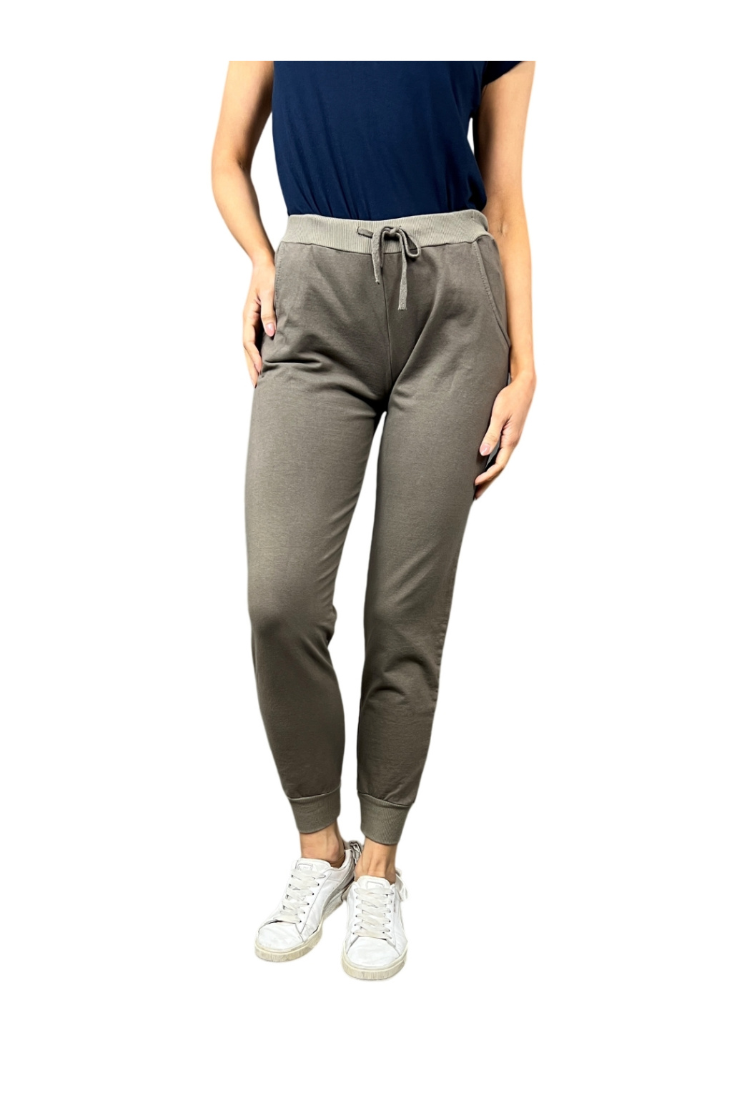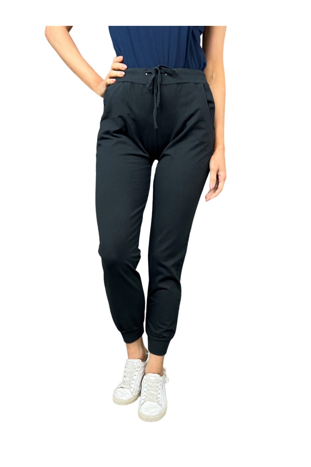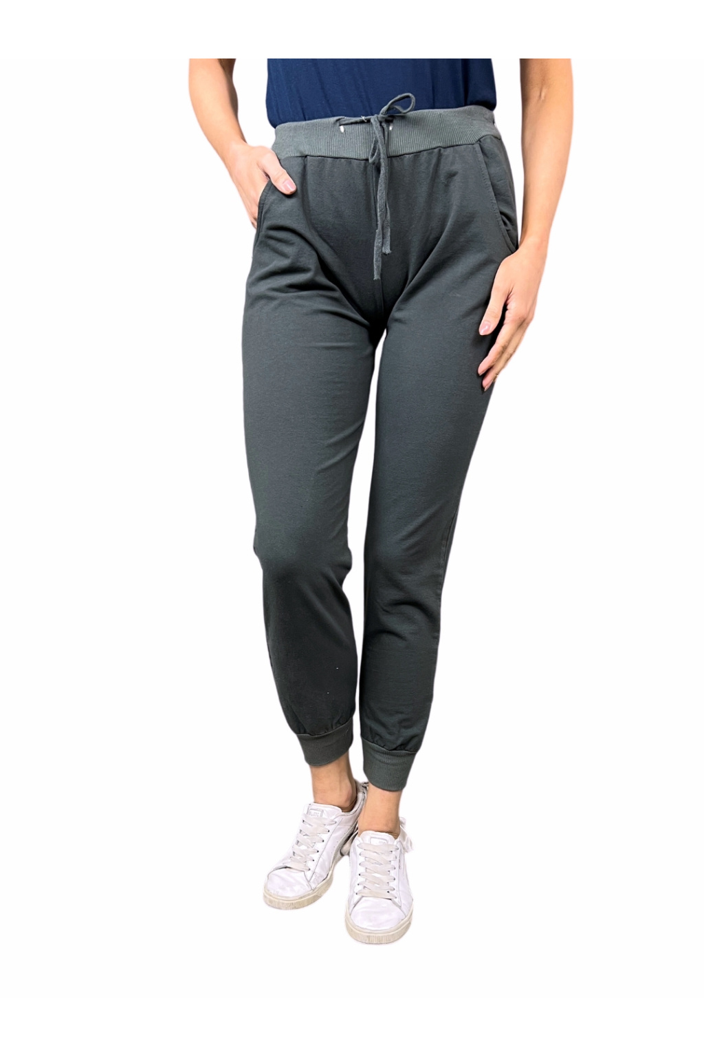 Dámské jednobarevné tepláky s gumou a bočními kapsami. Tepláky jsou z velice příjemného materiálu. Vhodné na sport, zábavu, volný čas. V pase šňůrka na stažení.