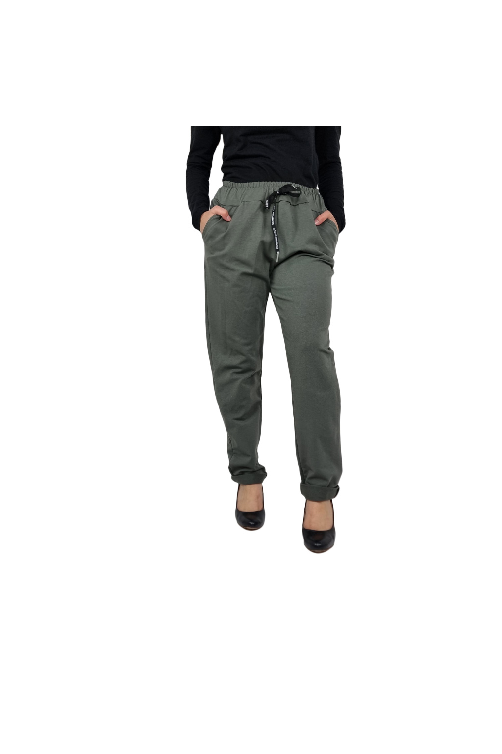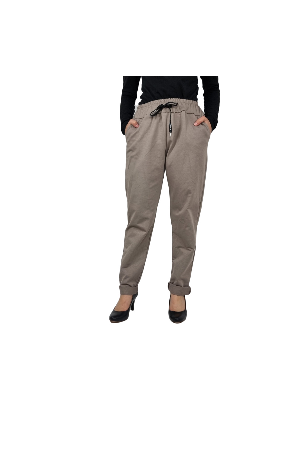 Dámské stylové tepláky Simple. Tepláky jsou jednobarevné. V pase pružný lem a tkanička ke stažení.