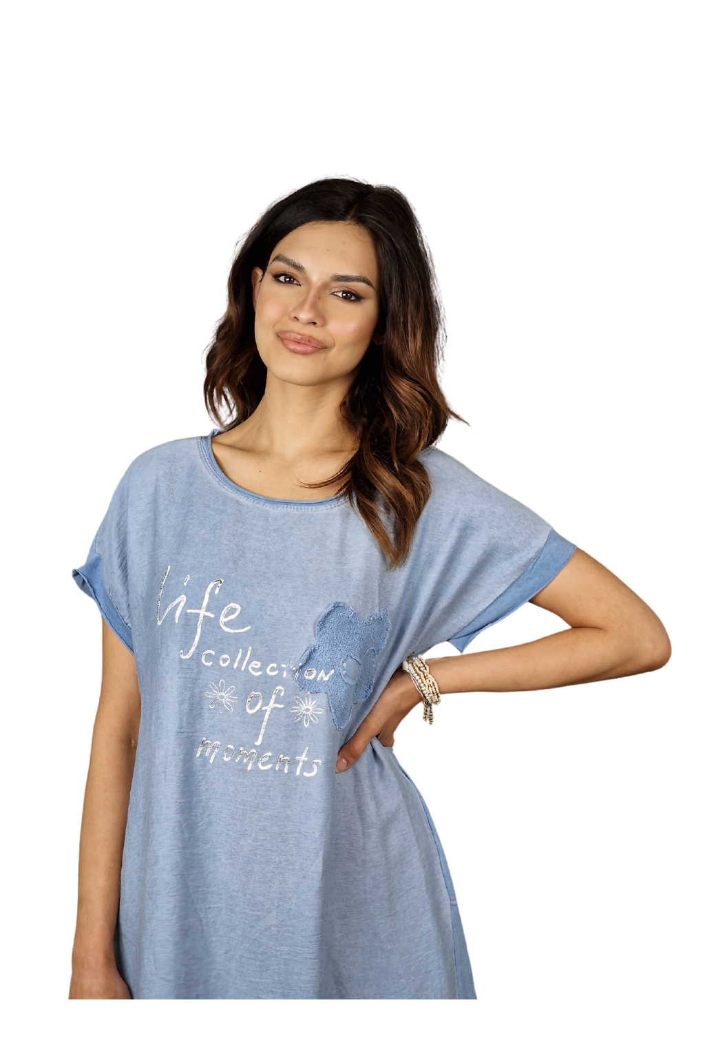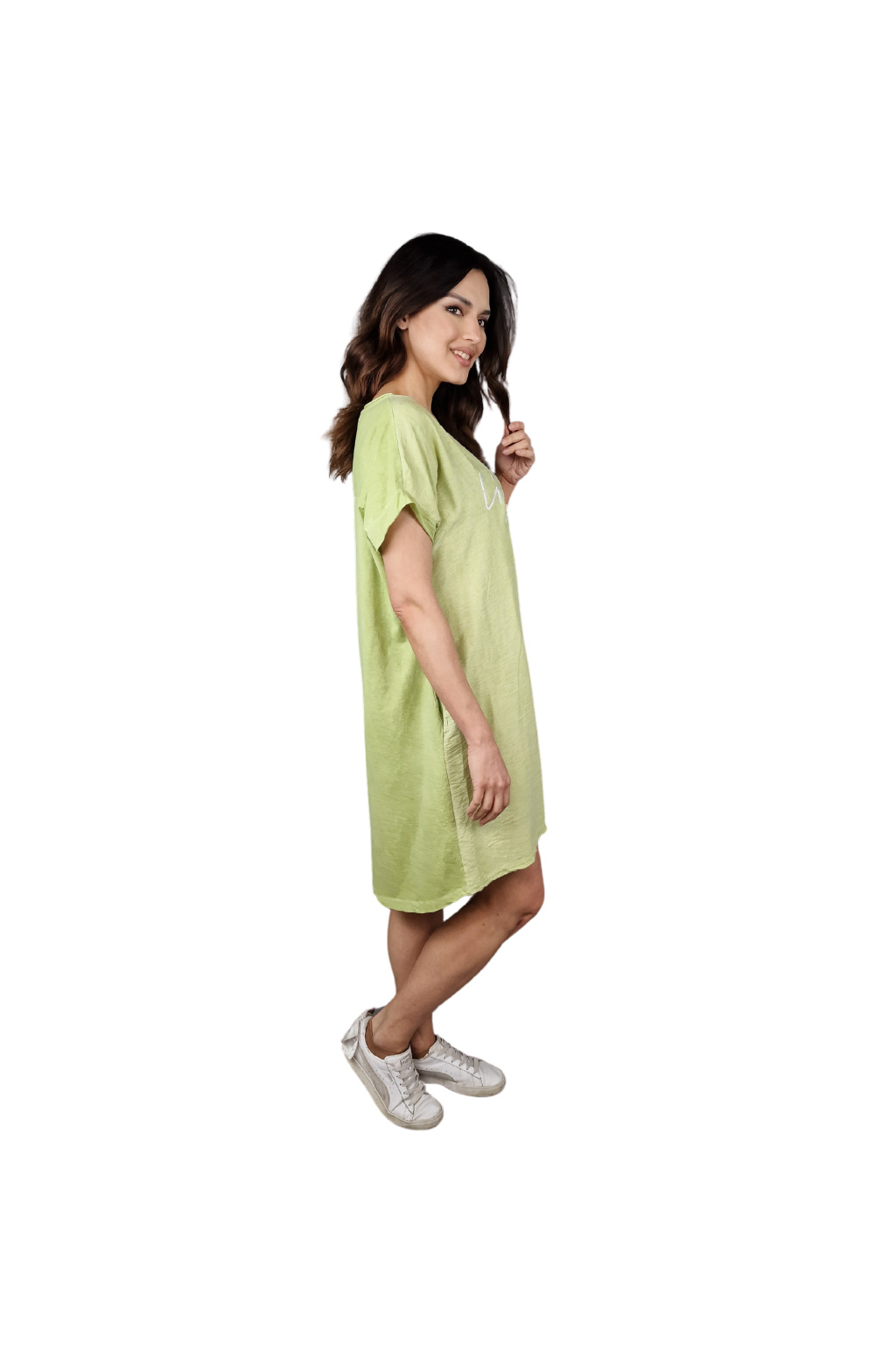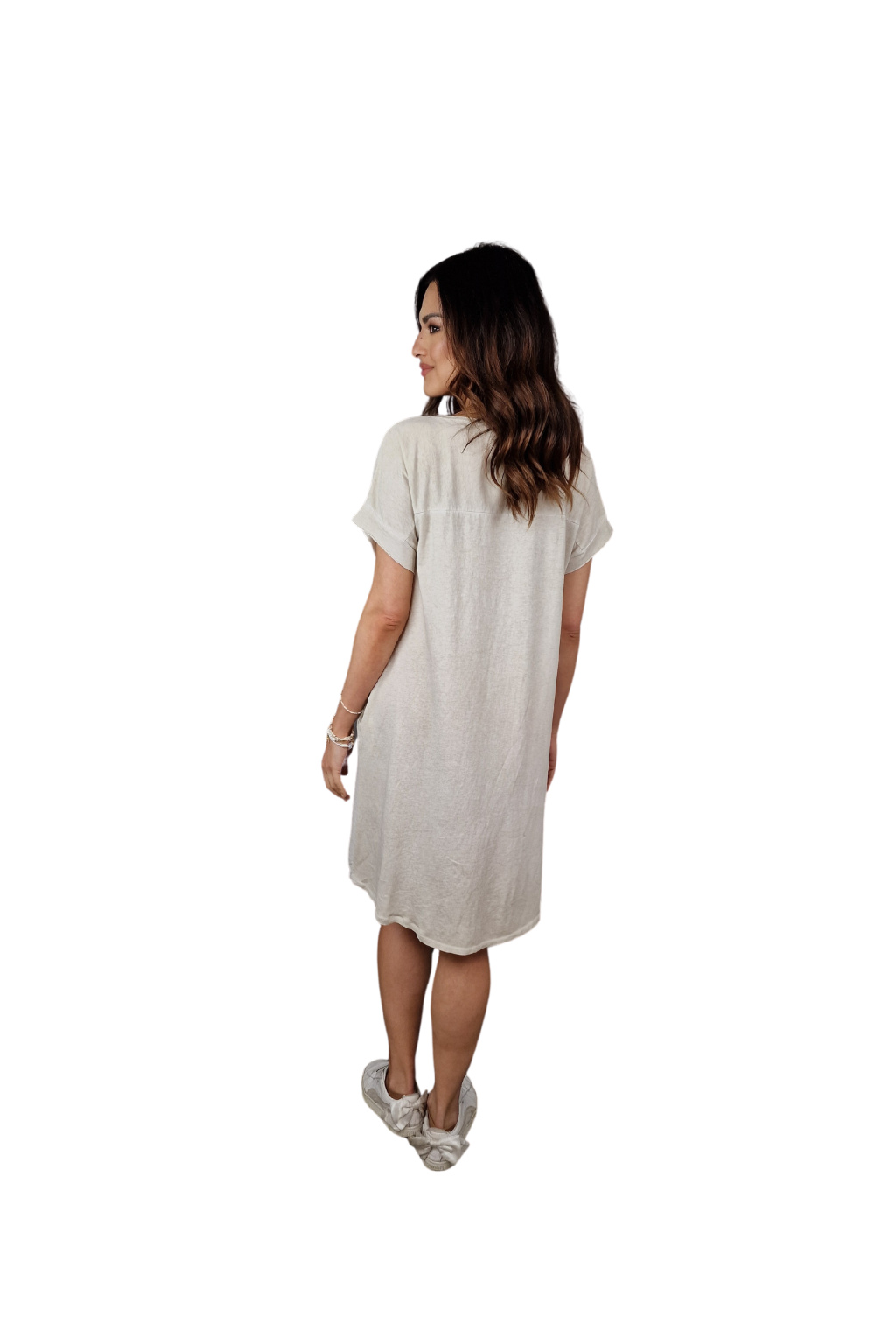 Šaty mají volnější střih, který zajišťuje maximální komfort během nošení. Krátké rukávy jsou ideální pro letní pohodu, umožňují volnost pohybu a zároveň poskytují lehké zakrytí.
