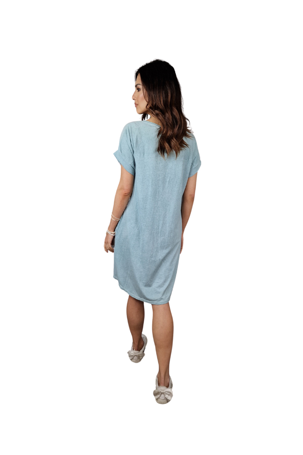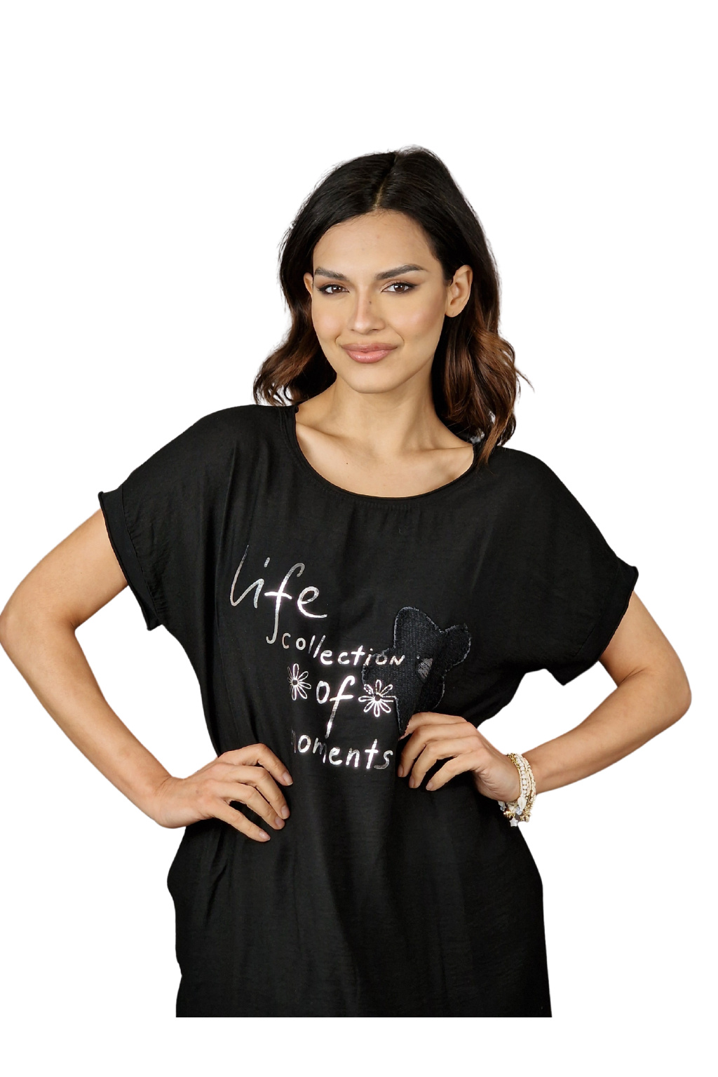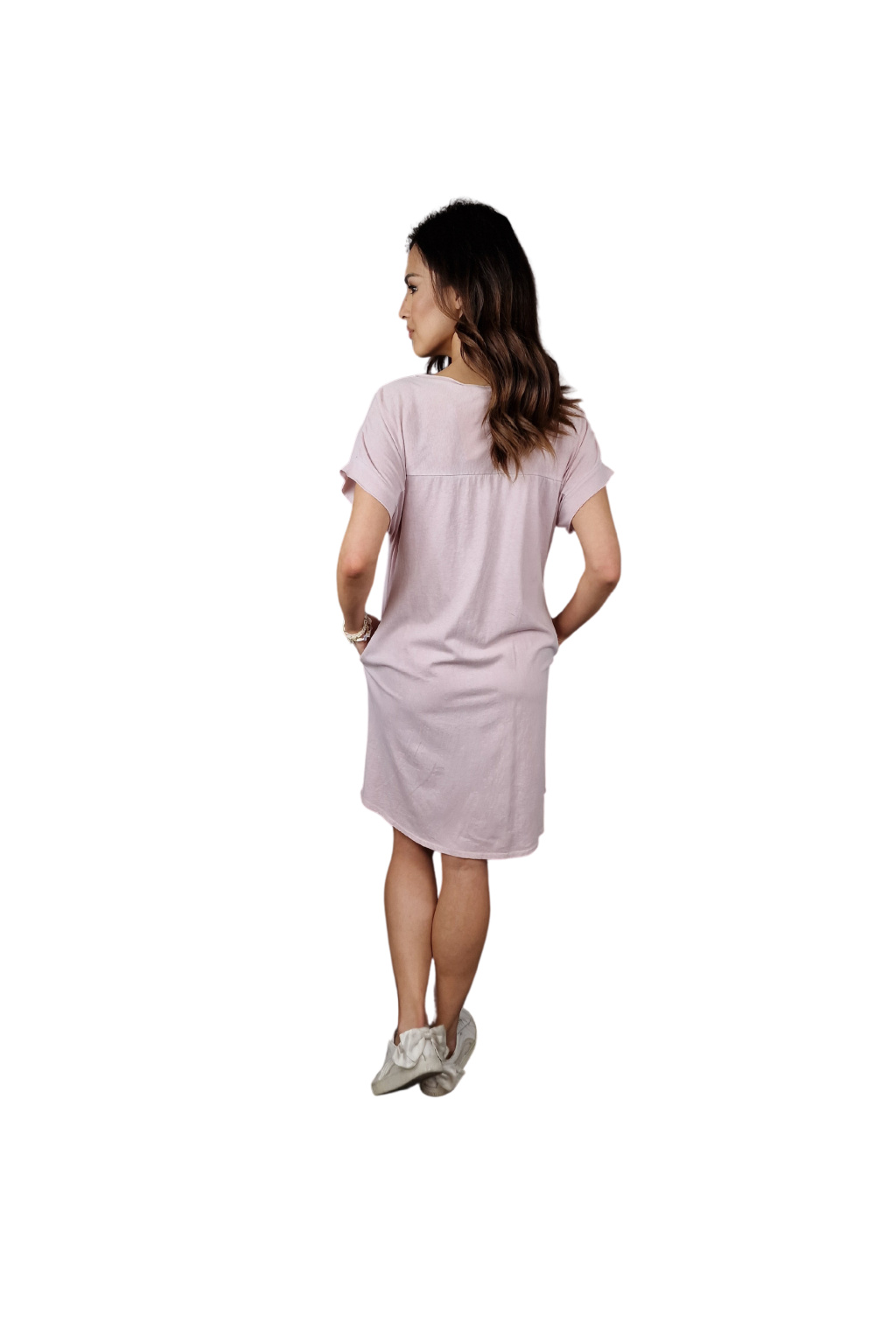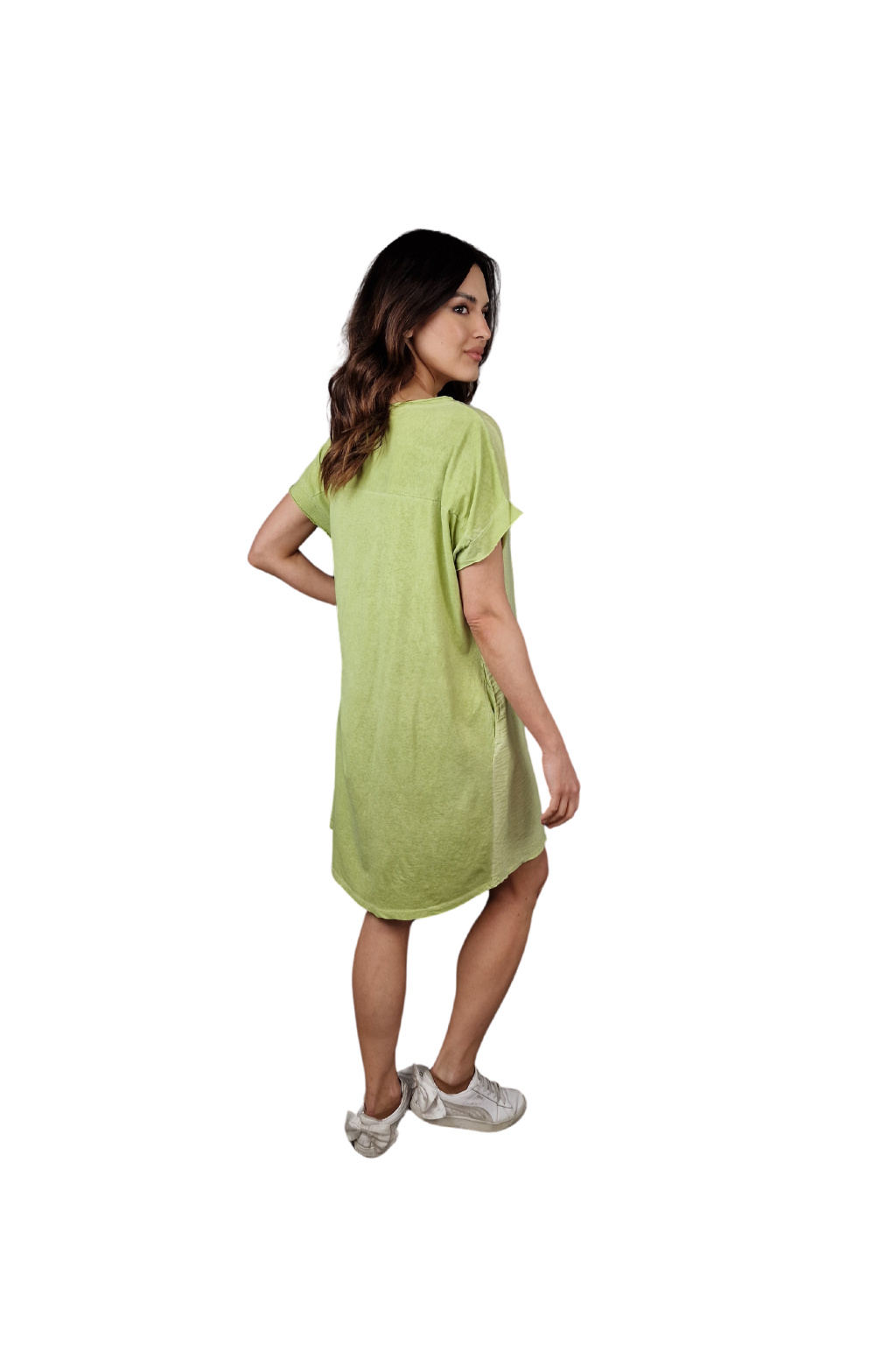 Šaty mají volnější střih, který zajišťuje maximální komfort během nošení. Krátké rukávy jsou ideální pro letní pohodu, umožňují volnost pohybu a zároveň poskytují lehké zakrytí.