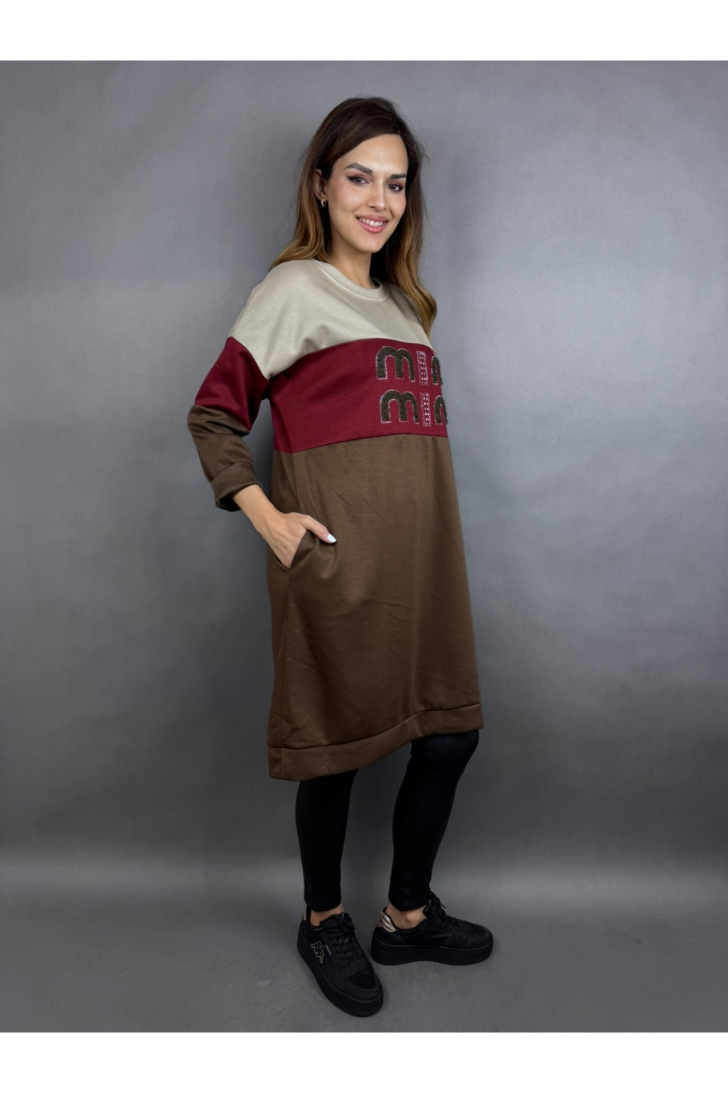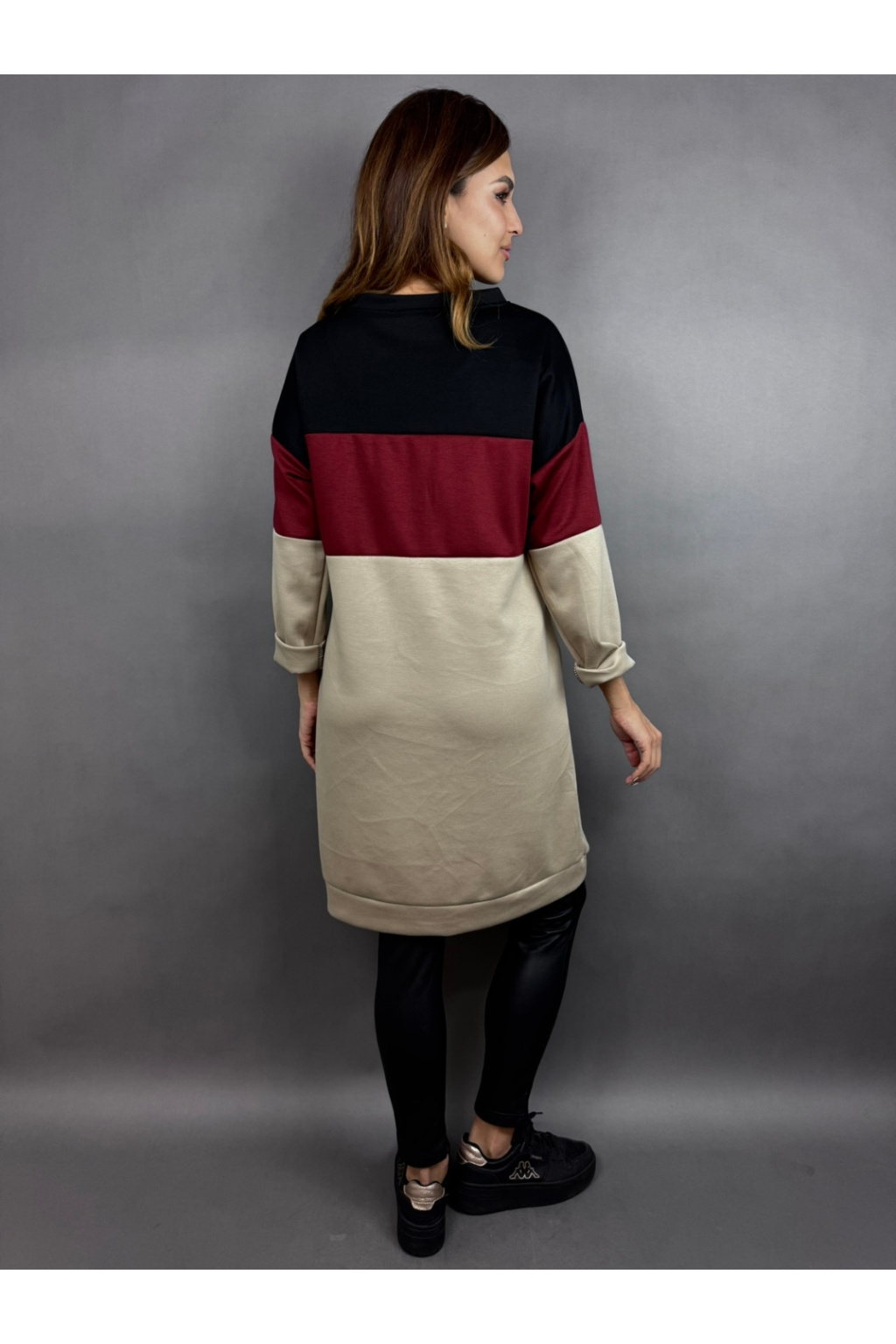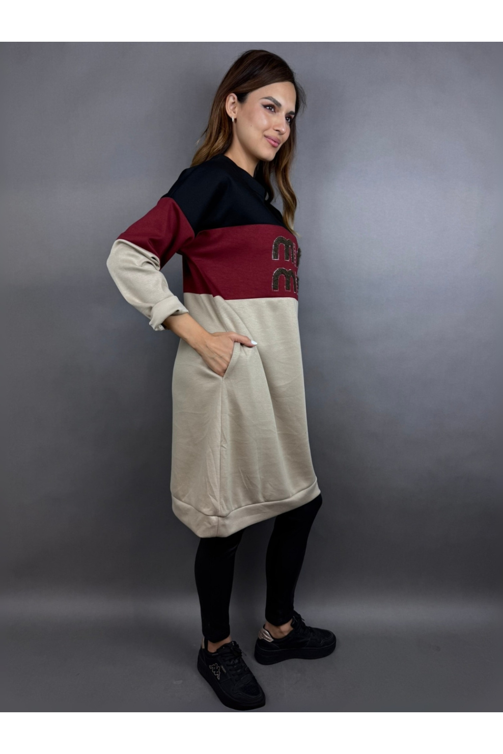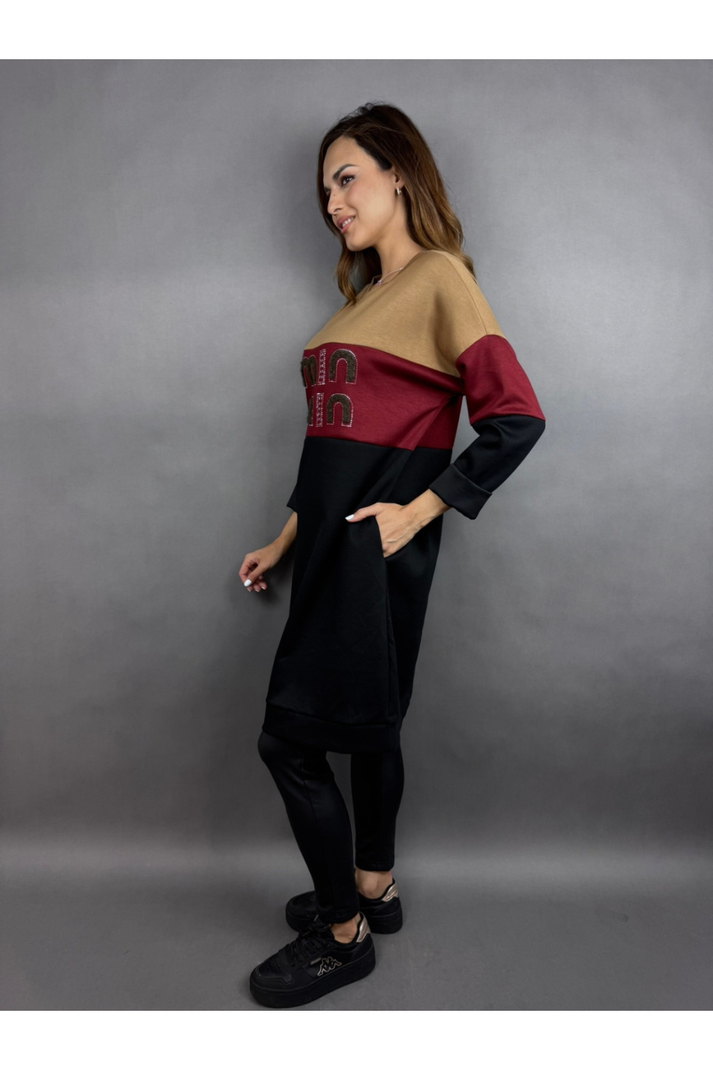 Dámské mikinové šaty Mariel spojují pohodlí mikiny s moderním designem. Barevné bloky a nápis s kamínky na hrudi jim dodávají jedinečný vzhled.