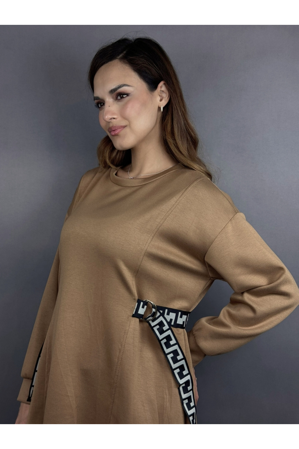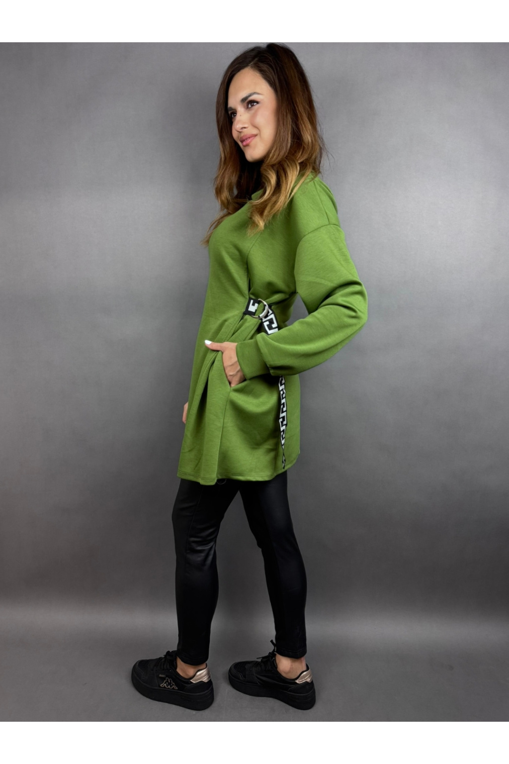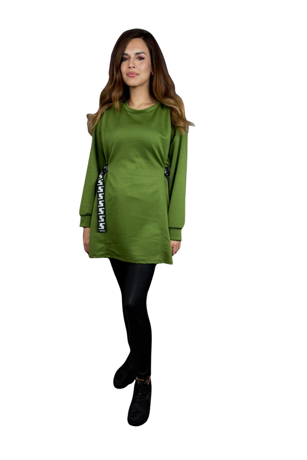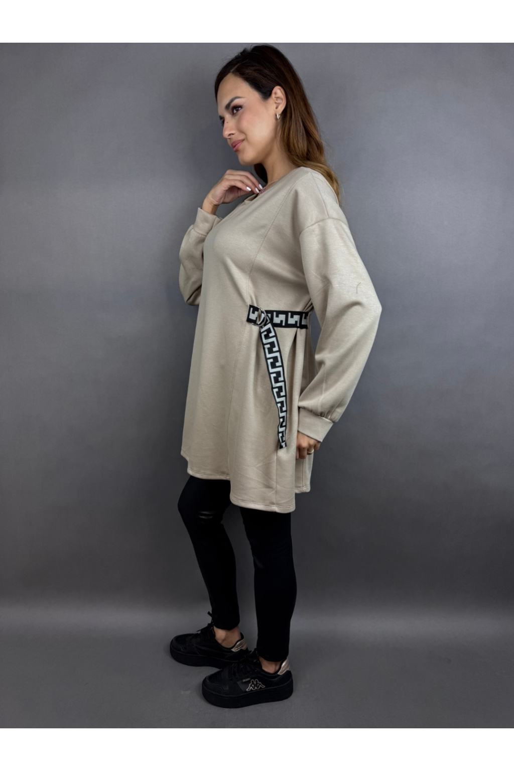 Dámské mikinové šaty Nira jsou ideální volbou, pokud hledáš spojení pohodlí a stylu. Volný střih s ozdobným páskem v pase dodává šatům ženský nádech a originální vzhled.
