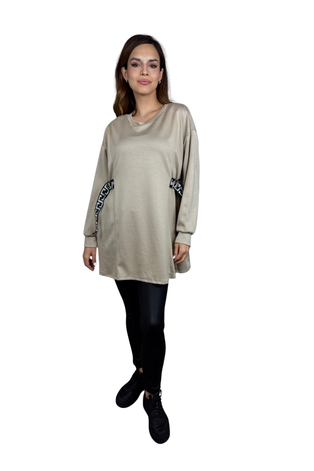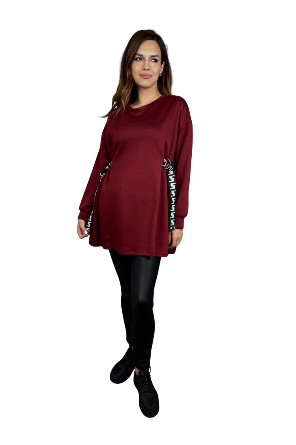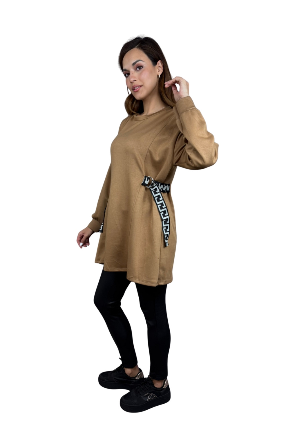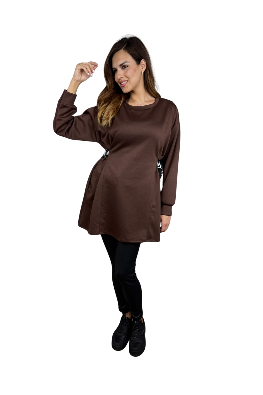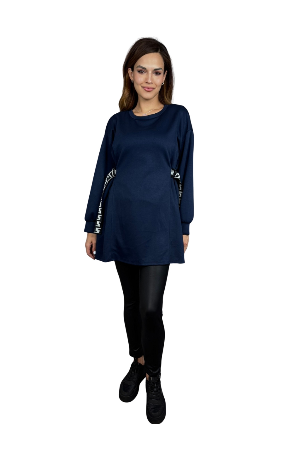 Dámské mikinové šaty Nira jsou ideální volbou, pokud hledáš spojení pohodlí a stylu. Volný střih s ozdobným páskem v pase dodává šatům ženský nádech a originální vzhled.
