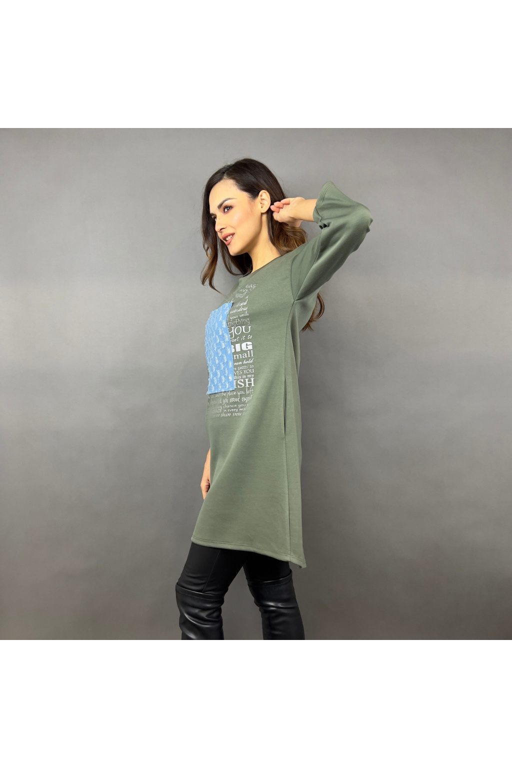 Mikinové šaty Defne můžete nosit volně jako pohodlné šaty nebo kombinovat s legínami či úzkými kalhotami pro moderní ležérní vzhled. Skvěle vypadají s teniskami i elegantní obuví.