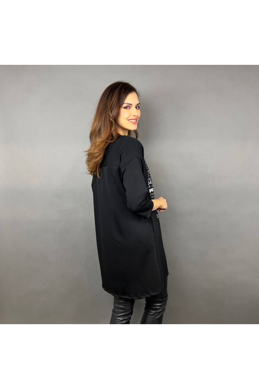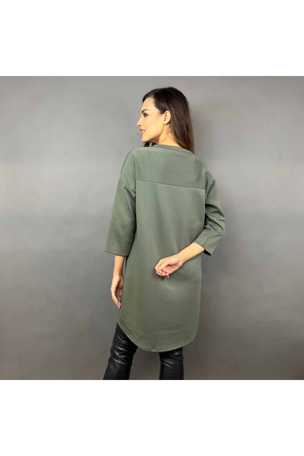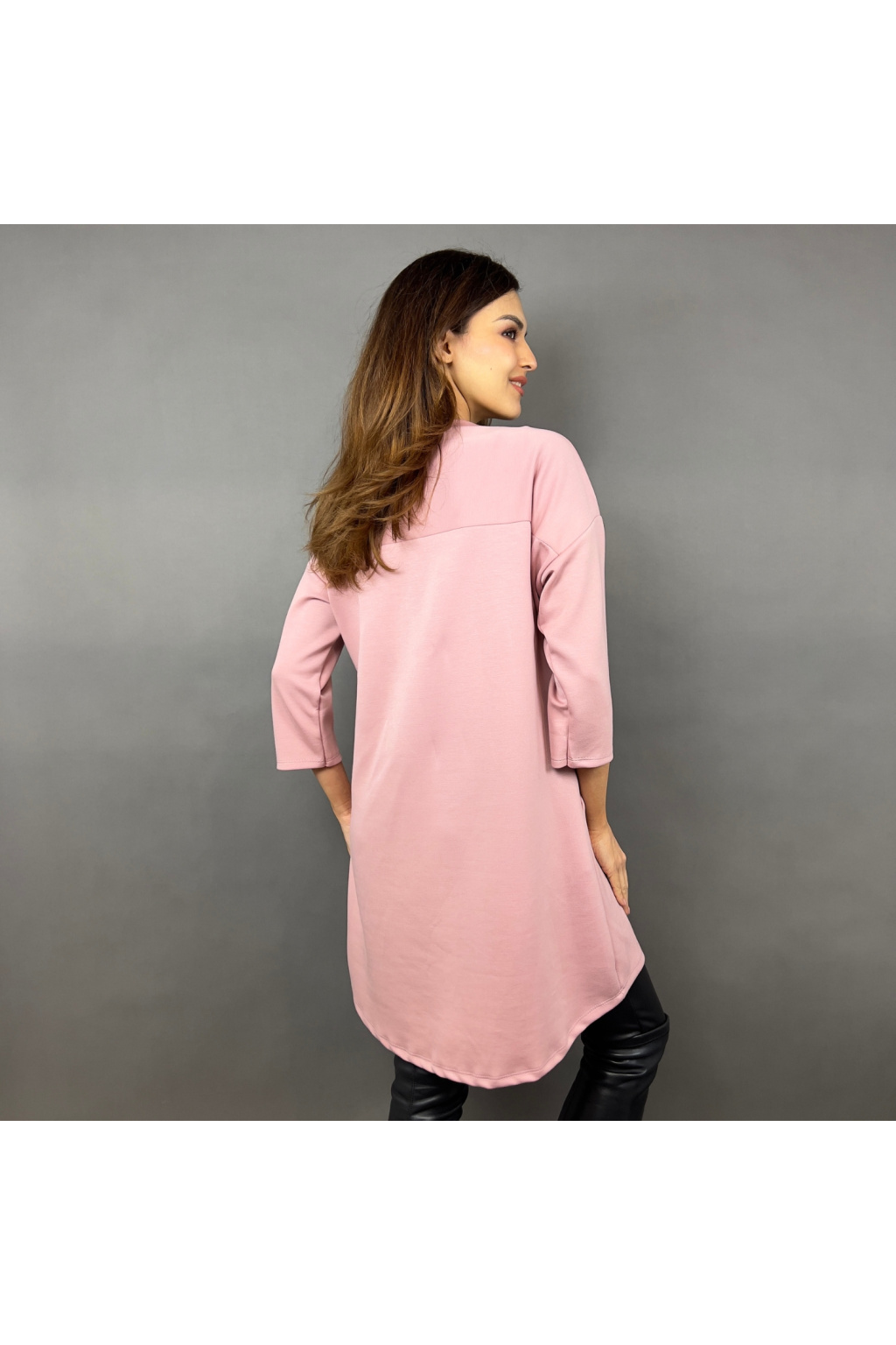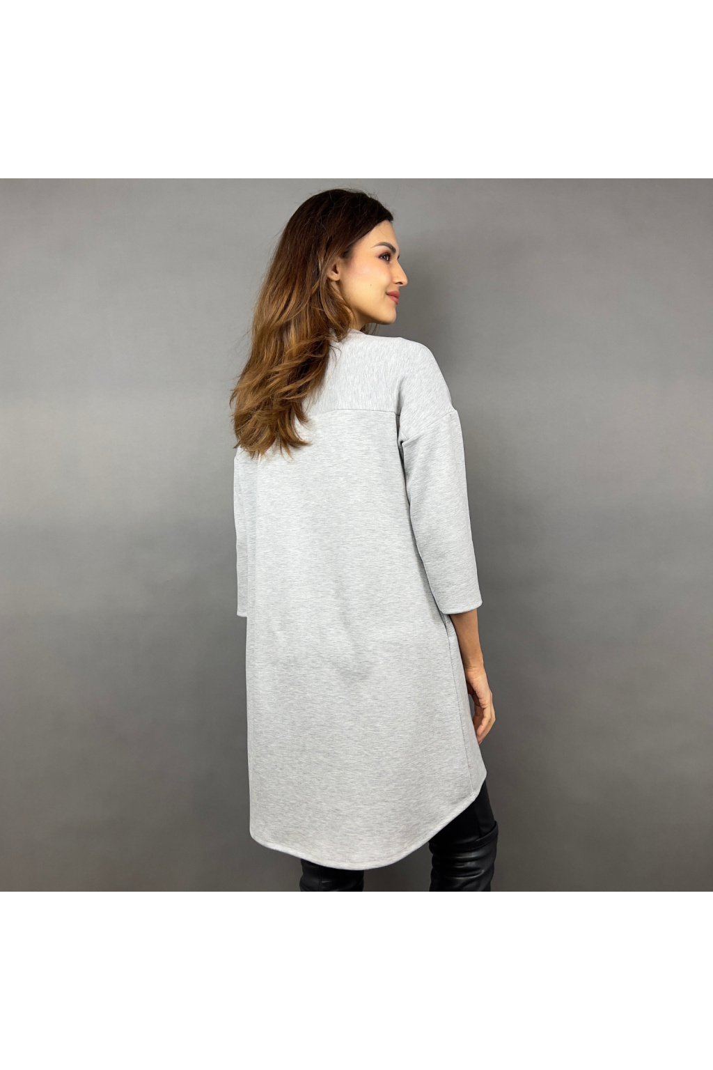 - Prodloužená délka – lze nosit jako šaty nebo delší mikinu