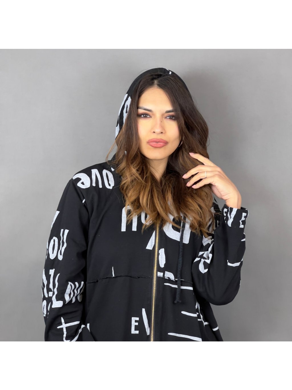 Detaily: | Nápisový potisk, Kapuce, Zip |
