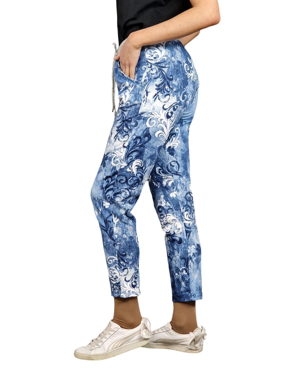 Délka těchto tepláků je 7/8, což znamená, že končí asi nad kotníkem. Tato délka je aktuální trendy a přináší moderní a stylový vzhled. Budete se cítit pohodlně a sebevědomě, ať už je nosíte při cvičení, běžných denních aktivitách nebo při odpočinku doma.