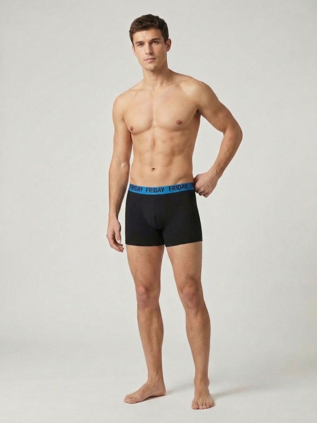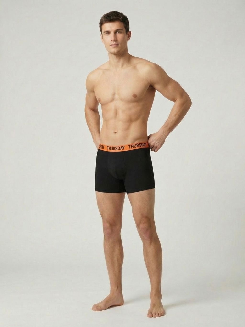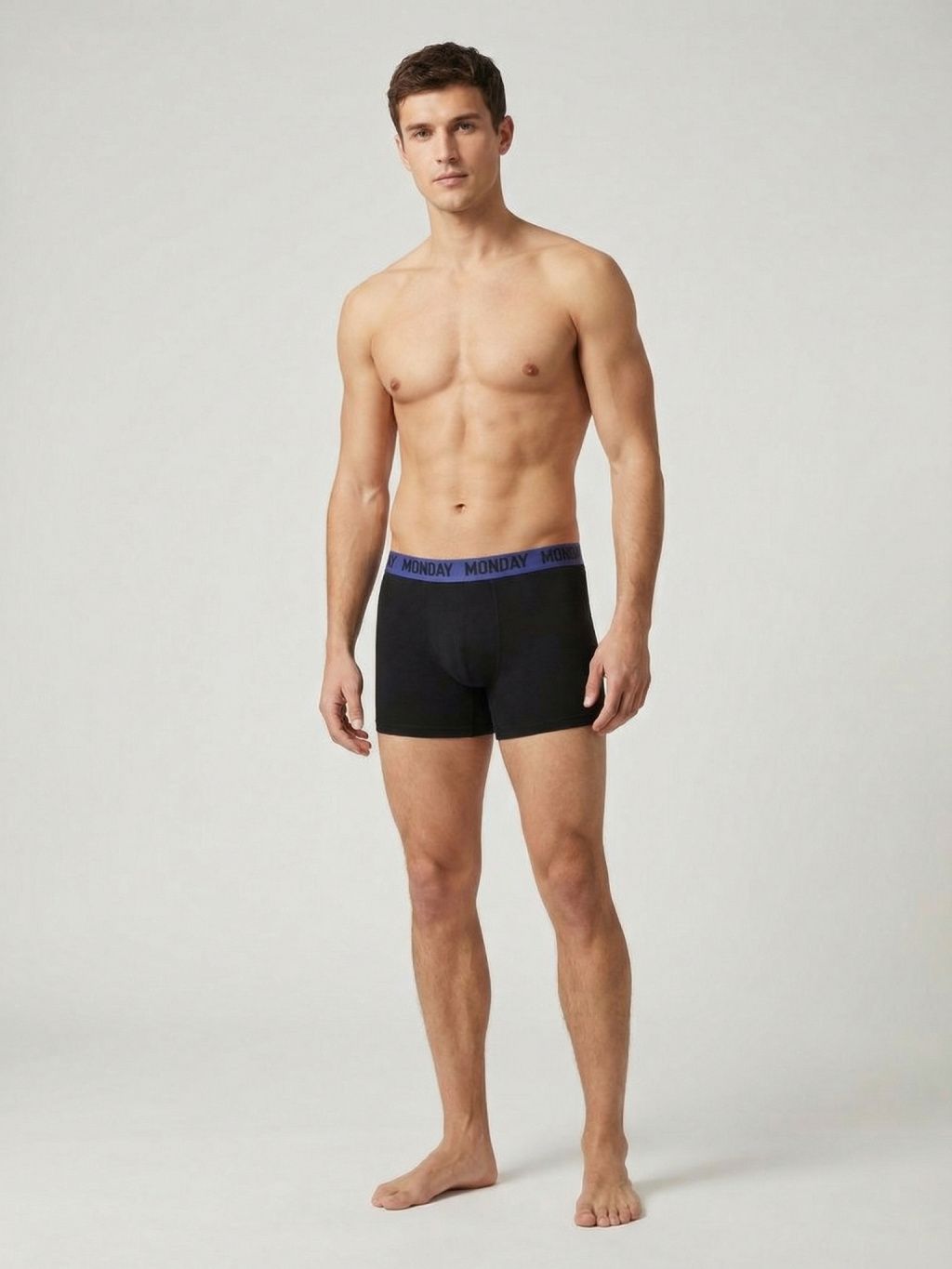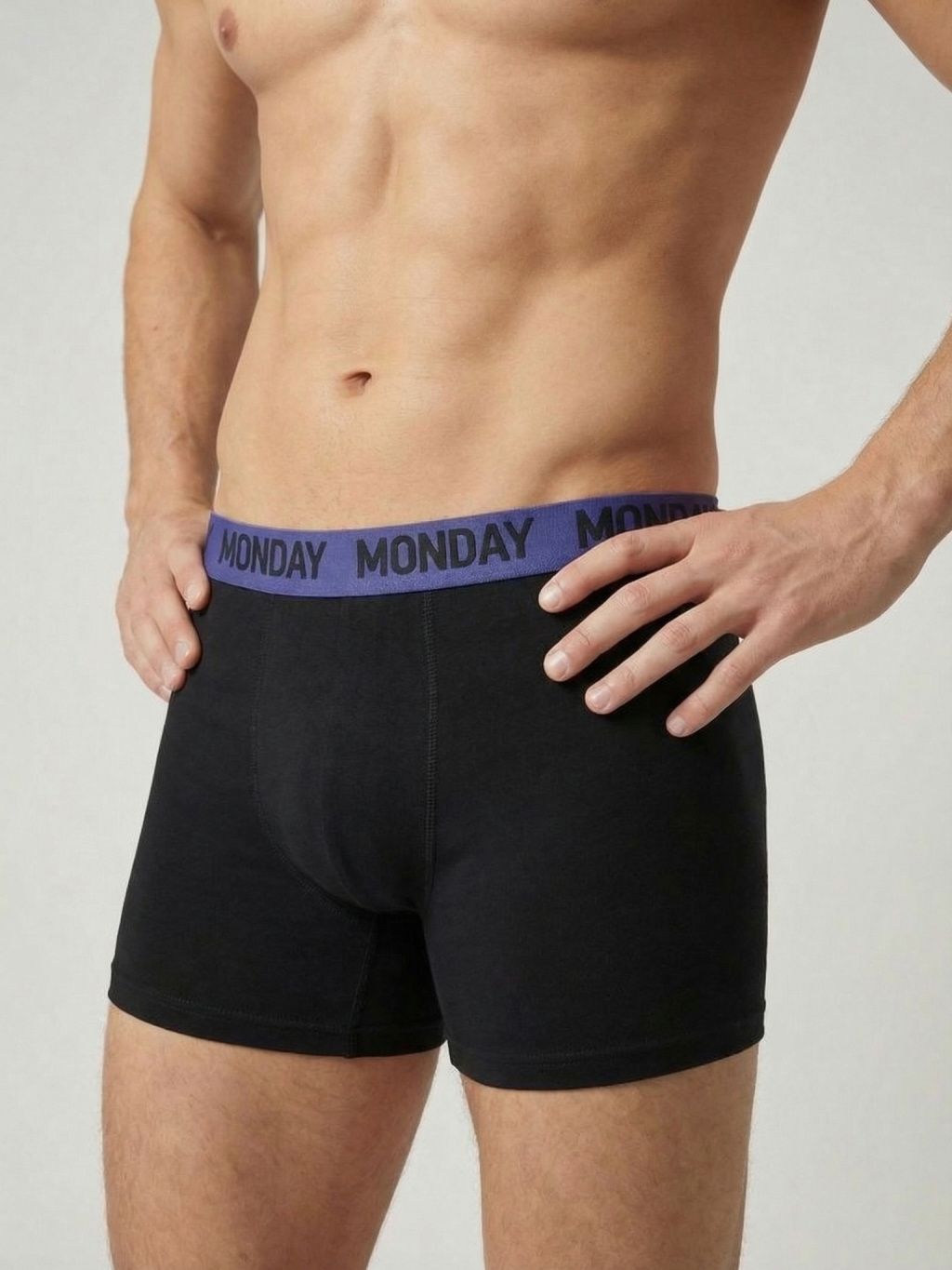 Týdenní sada 7 boxerek Everyday od HOSH je odpověď na otázku, kterou si klade každý muž ráno u šatníku. Každý kus nese jiný den v týdnu vytkán přímo do širokého elastického pasu — v odstínech od fialové přes oranžovou, modrou a limetkovou až po růžovou. Tělo boxerek je v čisté černé barvě z prémiové bavlněné pleteniny 180gsm, která drží tvar prací za pracím.