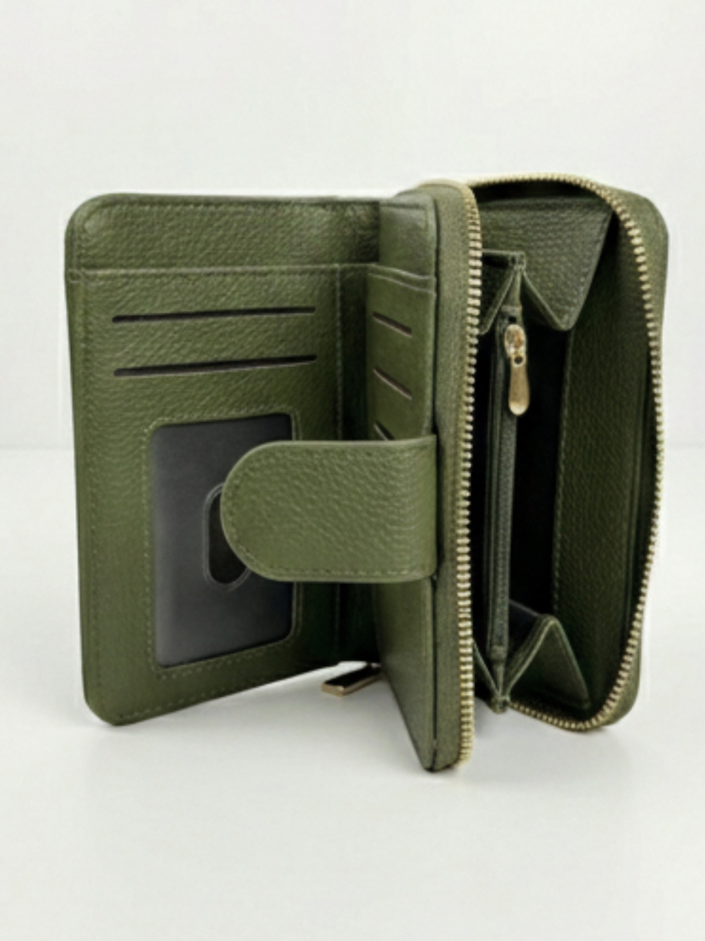 Peněženka Aura je nadčasový kousek, který vypadá luxusně a zároveň je maximálně praktický. Jemně strukturovaný povrch, zlaté detaily a kompaktní formát z ní dělají ideální volbu na každý den — do práce, do města i na cestování.
